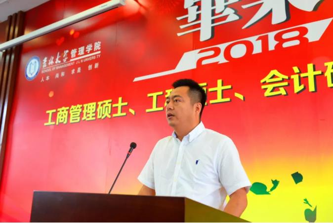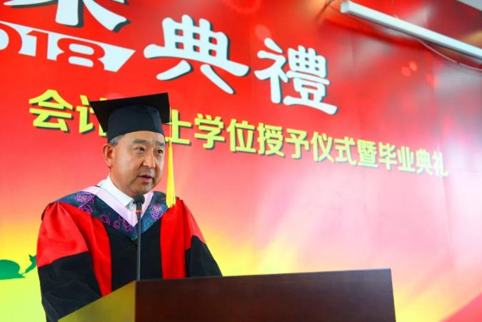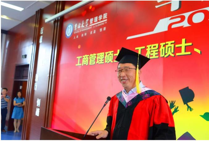典礼进行第四项:实破生花,放飞理想。追逐美好理想,谨守法律道德底线是管理公司对同学们的嘱咐与期望,承载着这份嘱托,毕业生们跟随领誓人2018届MBA毕业生胡畔一起进行了诚信宣誓。接下来,suncitygroup太阳成集团管理公司MBA联合会代表,2015级MBA班长,中粮集团高级经理刘凯代表历届MBA学长及suncitygroup太阳成集团管理公司MBA联合会致辞。刘凯说,联合会向大家敞开大门,欢迎同学们加入,衷心希望同学们秉承校训精神,成就一番事业,回馈社会,回馈母校的培养,回馈自己百战归来在读书的坚持与梦想。然后,教师代表费宇鹏教授致辞。费老师首先祝贺了即将毕业的同学们,并请大家思考:作为一个生长在伟大时代的管理人应该有哪些作为?费老师生动地讲述了英国的英国制造商和工程师马修·博尔顿投资生产并推广瓦特的蒸汽机的故事,以及美国的汽车工程师与企业家亨利·福特成为世界上第一位使用流水线大批量生产汽车的人的故事。这些卓越的管理人激励着同学们把理论付诸实践,用行动开创伟大时代。最后,管理公司经理赵树宽教授致辞。赵经理向各位来宾表示热烈的欢迎,向即将取得硕士学位的同学们表示热烈的祝贺;他叮嘱同学们不忘师恩,砥砺前行。他向同学们提出几点希望与大家共勉:第一,以创新思维回响时代召唤。保持创新思维,就是要有敢为人先的锐气,以求真务实的态度,结合实际积极探索新方法、新途径。不断学习是建立创新思维的根本,坚持学而信、学而思、学而行是创新行为的体现。第二,以创业精神开拓迟迟行道。创业精神就是保持激情,创业精神也是从容乐观,创业精神更是责任与担当,同学们要以负责的心对待生活和事业,克己恬静、宠辱不惊。第三,以赤子情怀坚守致知初心。要在这个充满诱惑与迷茫的社会中不忘初心,首先就必须具有奉献精神,同时还要常怀感恩之心。赵经理表示管理公司会一直关爱着我们的员工,也希望你们能够关心母校的建设与发展。最后,祝愿大家珍惜今天,放眼未来,律己隆法,修身明德,不辱使命,不负重托,前程锦绣,人生幸福!