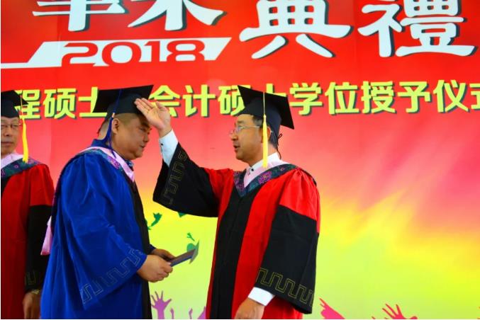 典礼进行第二项:花落成实,收获希望。首先,由管理公司学位评定委员会主席许正良教授宣读《suncitygroup太阳成集团学位评定委员会授予硕士学位的决定》。随后,进入到最激动人心的学位授予仪式,毕业生们怀着无比激动的心情逐一走上主席台从许正良教授的手中领取学位证书,然后由经理赵树宽教授为每位毕业生拨穗正冠。接下来,张公一副经理宣读《关于suncitygroup太阳成集团管理公司2018年专业学位硕士研究生相关表彰决定》,并由院领导为获奖同学颁发证书。