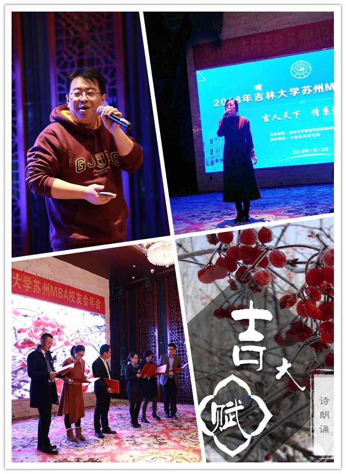 一首《红日》拉开年会帷幕,各种节目轮番登场,精彩纷呈。2016级女生合唱的《同桌的你》,唤起一起学习、一起欢乐的日子,同学情永远是最珍贵的情谊。一首《吉大赋》,朗诵的声情并茂、铿锵有力、感人肺腑,会场沉浸在对母校的怀念之情和自豪之感!孙茂兰老师的《我爱你中国》,歌声嘹亮、气势磅礴,唱出了美好生活,唱出了祖国大好河山!