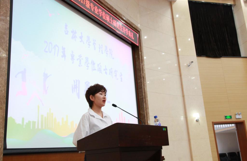 接着,2016级工商管理硕士刘宇同学代表管理公司在校生发言,并以自己一年来的学习经历为例,鼓励同学们在研究生阶段勇于尝试,珍惜来之不易的学习机会。2017MBA的张展同学则代表全体新生进行了发言。