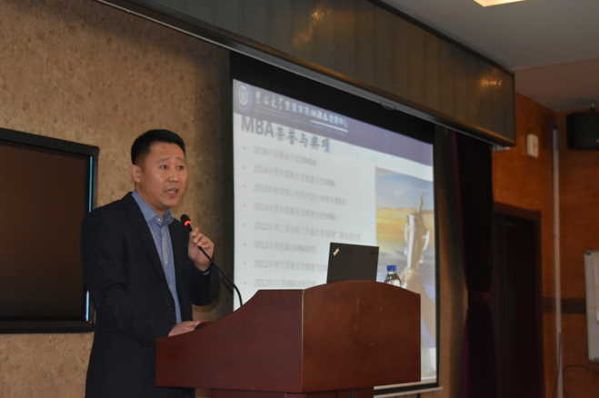 接下来,16届MBA韩百儒同学就自己报考管理公司MBA的原因,入学后的学习收获,精彩的MBA校园生活,真挚的同窗情义及毕业后对工作的提升与帮助进行了生动的阐释。