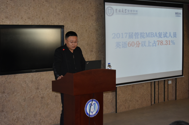 然后,管理公司16级MBA李凌宇同学、17级MBA新生娄岩同学分别就管理类联考、外语的备考经验向考生进行交流,期间李凌宇同学特别就“备考时间分配”、“平均主义阅卷方式”进行了生动详细的介绍。