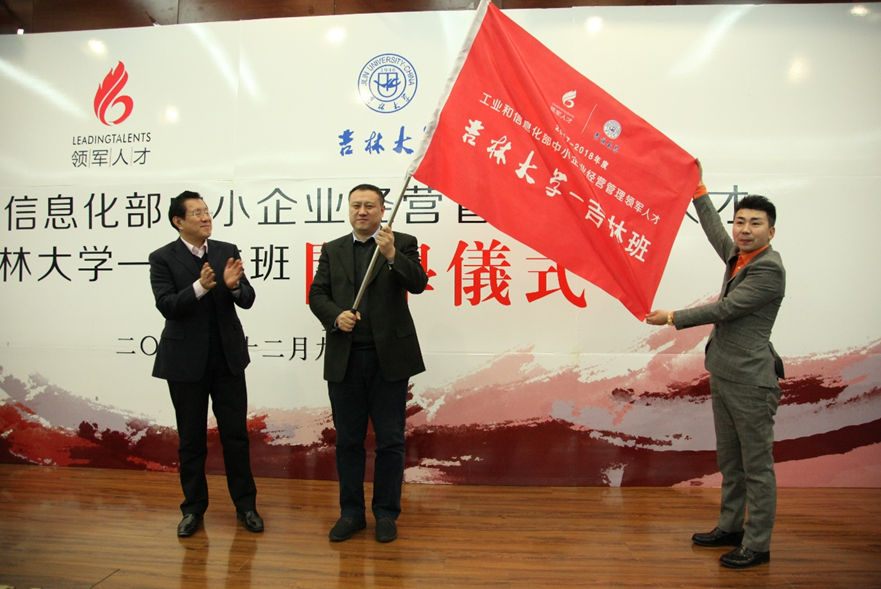 学员发言结束后,吉林省工业和信息化厅副厅长孙大维向新学员代表赠送了班旗。