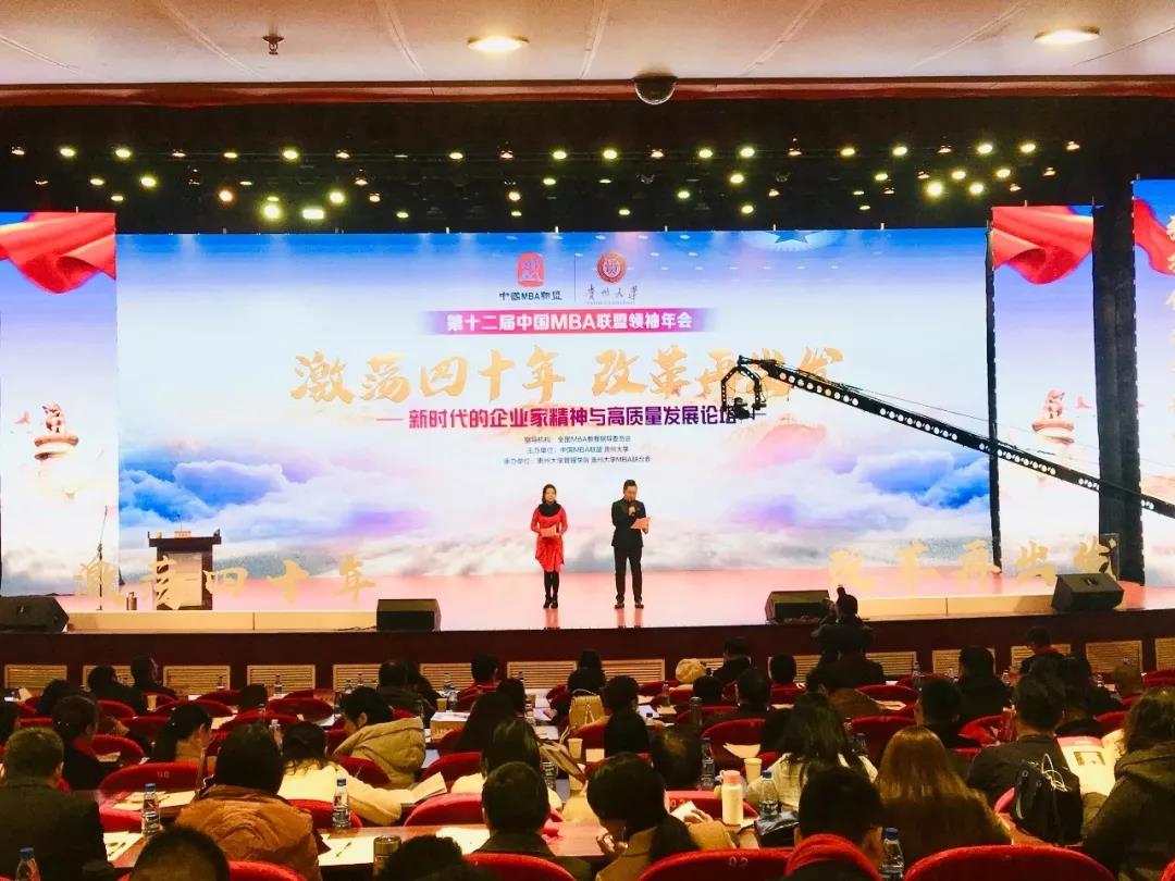 2018年12月15日,第十二届中国MBA联盟领袖年会在贵阳会议中心隆重开幕。本届年会由全国MBA教育指导委员会指导,中国MBA联盟、贵州大学主办,贵州大学管理公司、贵州大学MBA联合会共同承办。会议以“激荡四十年 改革再出发——新时代的企业家精神与高质量发展”为主题,来自全国百余所高校的经理、教师、顾委会成员、区域联盟主席、优秀MBA/EMBA学员代表共近千人参加了此次会议。