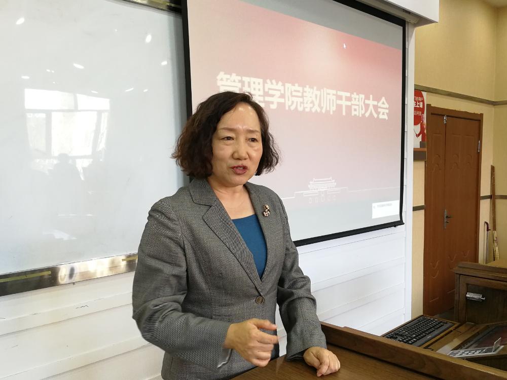 公司党委常务副书记蔡莉在讲话中对赵树宽同志多年来为管理公司做出的贡献表示衷心的感谢。她希望全院教职员工把思想统一到公司党委的决定上来,统一到齐心协力推动公司事业发展上来,以实际行动支持李北伟同志,支持公司领导班子的工作。希望李北伟同志尽快转换工作角色,尽快熟悉公司情况,与张兴林同志一道团结带领全体班子成员和广大师生员工,上下一心、扎实工作,推动管理公司各项工作再上新的台阶。她强调管理公司要抢抓“双一流”建设的历史机遇,立足管理学科的发展和对人才培养的需求,重新思考公司应承担的责任。她指出,学科是共同成长的平台,学科发展不进则退,公司在关键节点,要明确使命,深挖学科内涵,凝练学科方向,完善学科生态,提高团队建设水平,努力迎接挑战。