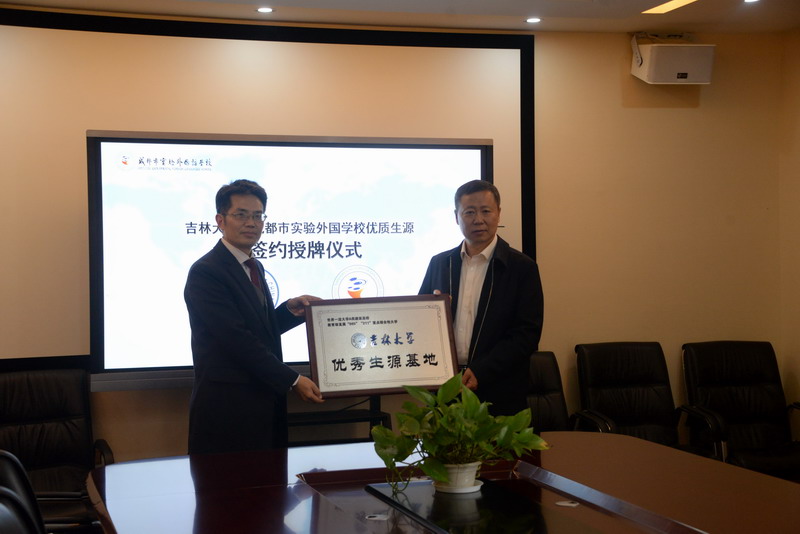 2019年04月18日,suncitygroup太阳成集团管理公司招生宣传组张兴林书记、王晰巍副经理等来到成都新都一中,成都实验外国语公司、树德中学进行suncitygroup太阳成集团优秀生源基地授牌。