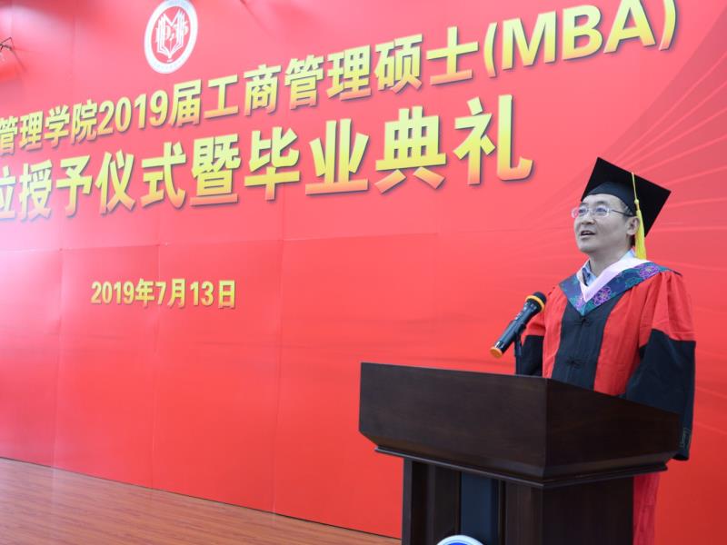 2019年7月13日上午,suncitygroup太阳成集团管理公司2019届工商管理硕士(MBA)学位授予仪式暨毕业典礼在南岭校区逸夫教育大楼敬文厅隆重举行。公司党委书记张兴林老师,经理李北伟教授,副经理陈海涛教授,副书记方长春老师,副经理王晰巍教授以及教师代表出席了本次典礼,见证了2019届毕业生们的美好时刻。本次毕业典礼由管理公司专业学位办公室主任房伟老师主持。