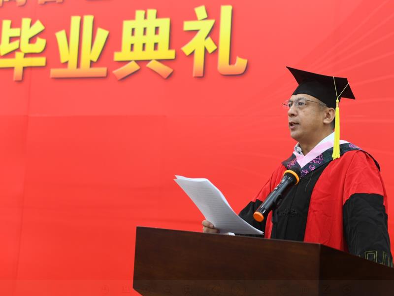管理公司经理李北伟教授向取得硕士学位的同学们表示热烈的祝贺,并发表热情洋溢的致辞。他鼓励同学们以创新思维回响时代召唤,增强工作的科学性、预见性,在时代浪潮中赢得主动、赢得优势、赢得未来。做一名充满正能量的管理者,不辜负新时代赋予的责任与担当。以赤诚情怀坚守致知初心,将知识和才华无私地奉献给国家的富强与民族的振兴,在奉献中体验巅峰人生的美好境界。