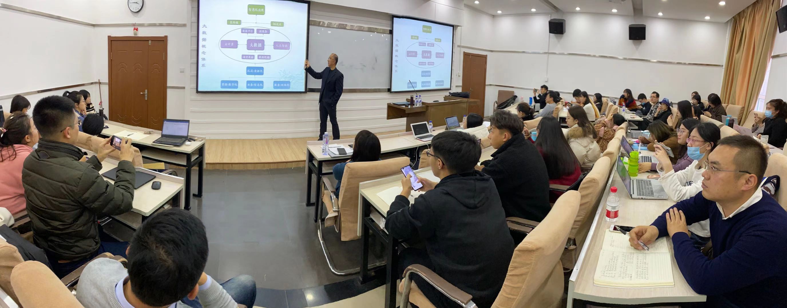 报告过程当中,化柏林博士深入的思考、严谨的学术作风、渊博的专业知识、深厚的学术功底、风趣的谈吐都给与会师生留下了深刻的印象,本次讲座不仅加深了与会师生对于大数据分析技术与方法的了解,同时也为广大师生带来了更广阔的思考空间。