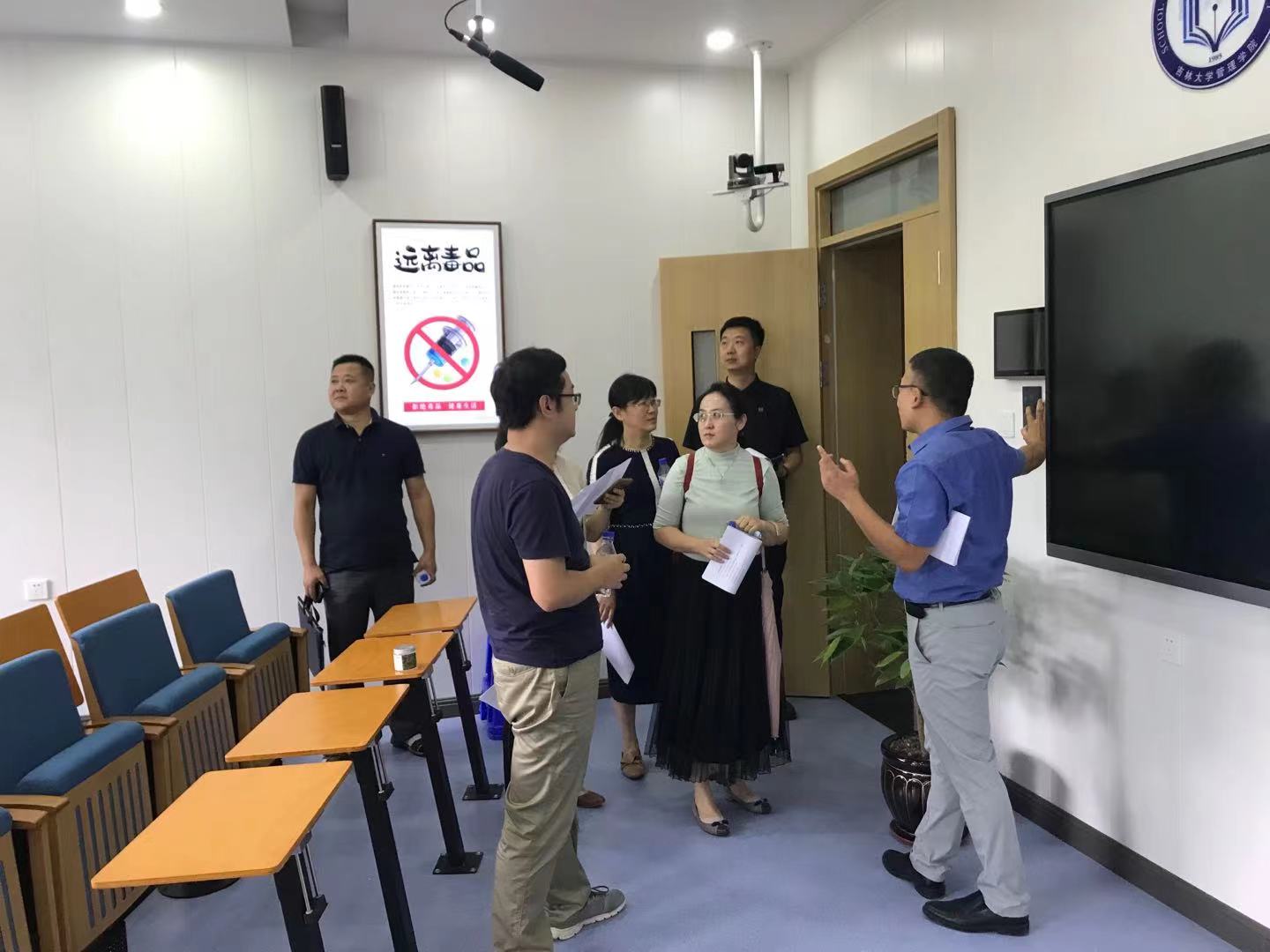 会后,马腾副经理带领全体参会老师参观了公司改造升级后的多功能教室、党员活动室,鼓励系里老师充分利用现代化、智能化的设备,积极开展教学、科研等方面的改革和探索活动。