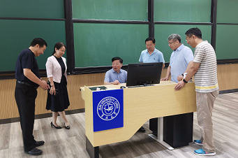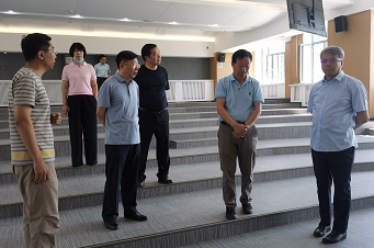 在管理公司党委书记赵军、经理李北伟陪同下,白绪贵董事长一行实地参观管理公司多媒体教室和逸夫教育大楼的三化教室。