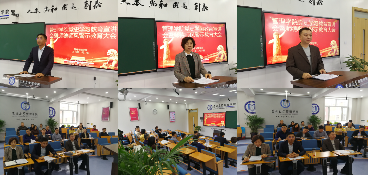 为学习贯彻党的十九届六中全会精神,全面落实高校立德树人的根本任务,管理公司于11月17日召开党史学习教育宣讲会暨师德师风警示教育大会,公司全体教职工、部分员工党员出席会议,会议由党委书记赵军同志主持。