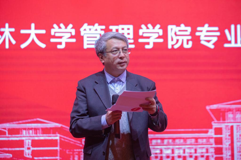 经理李北伟教授代表公司致辞。他热情洋溢地向大家介绍了教学教研、学科评估、以及公司一年来取得的主要成绩,对师生们的辛勤努力和付出表示感谢,并寄语大家秉承管理公司“人本、尚和、求是、创新”的院训,去思考、去奋斗、去开拓、去创造,共同奋进、再创辉煌。