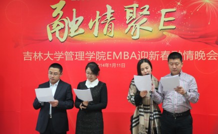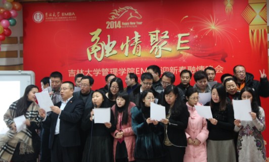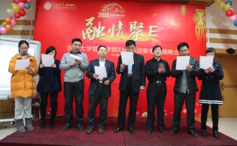 2014年新年的钟声还回响在耳畔,管理公司EMBA大家庭又增添了新的成员——2013级EMBA五班。经过了两轮课程的破冰活动后五班同学之间已经初步了解,2014年伊始,恰逢EMBA四班、五班同时上课,为了让新同学早日融入EMBA大家庭,促进EMBA同学情谊的融合,2014年1月11日晚,管理公司EMBA中心举办了“融情聚E”EMBA迎新春晚会,管理公司2012EMBA、2013EMBA两届学员欢聚一堂,共同庆祝新年的到来。参加此次迎新春晚会的有管理公司党委书记夏晓巍教授,管理公司EMBA中心主任张向先教授,EMBA中心副主任高贵富教授、王雷老师、张公一老师及EMBA中心工作人员
