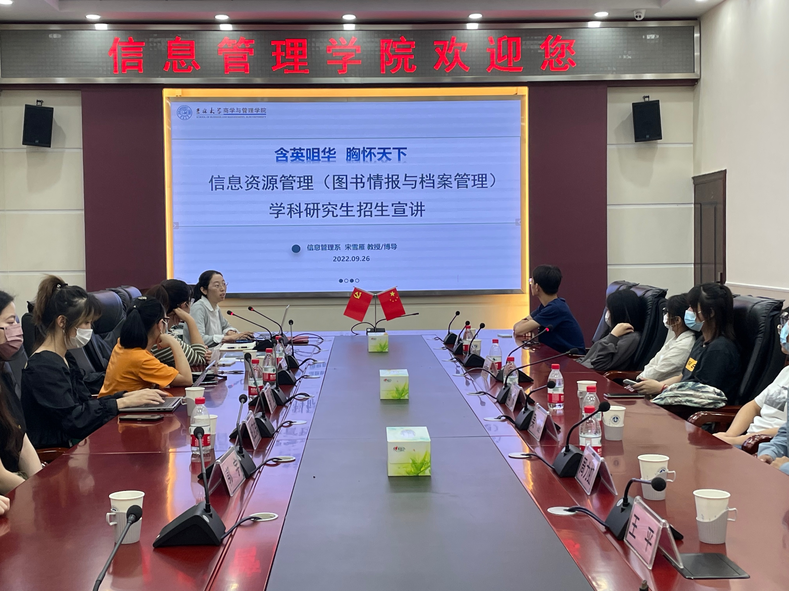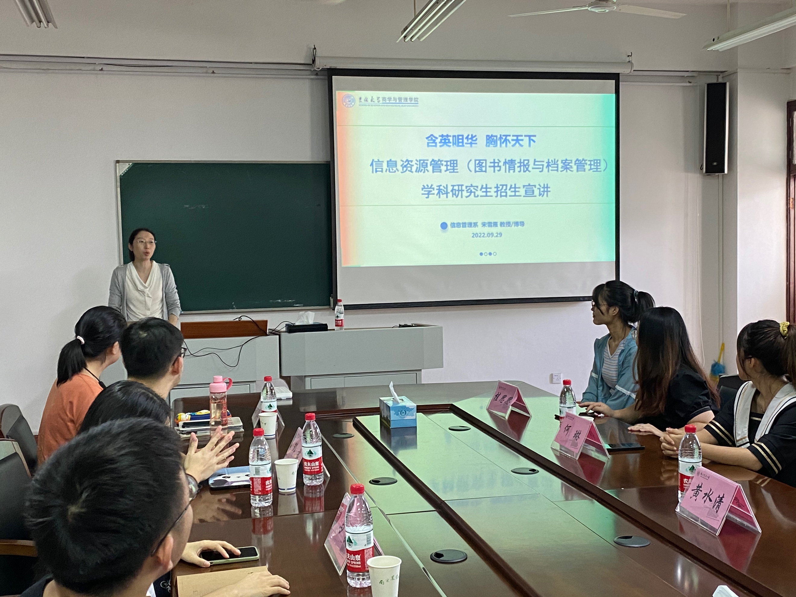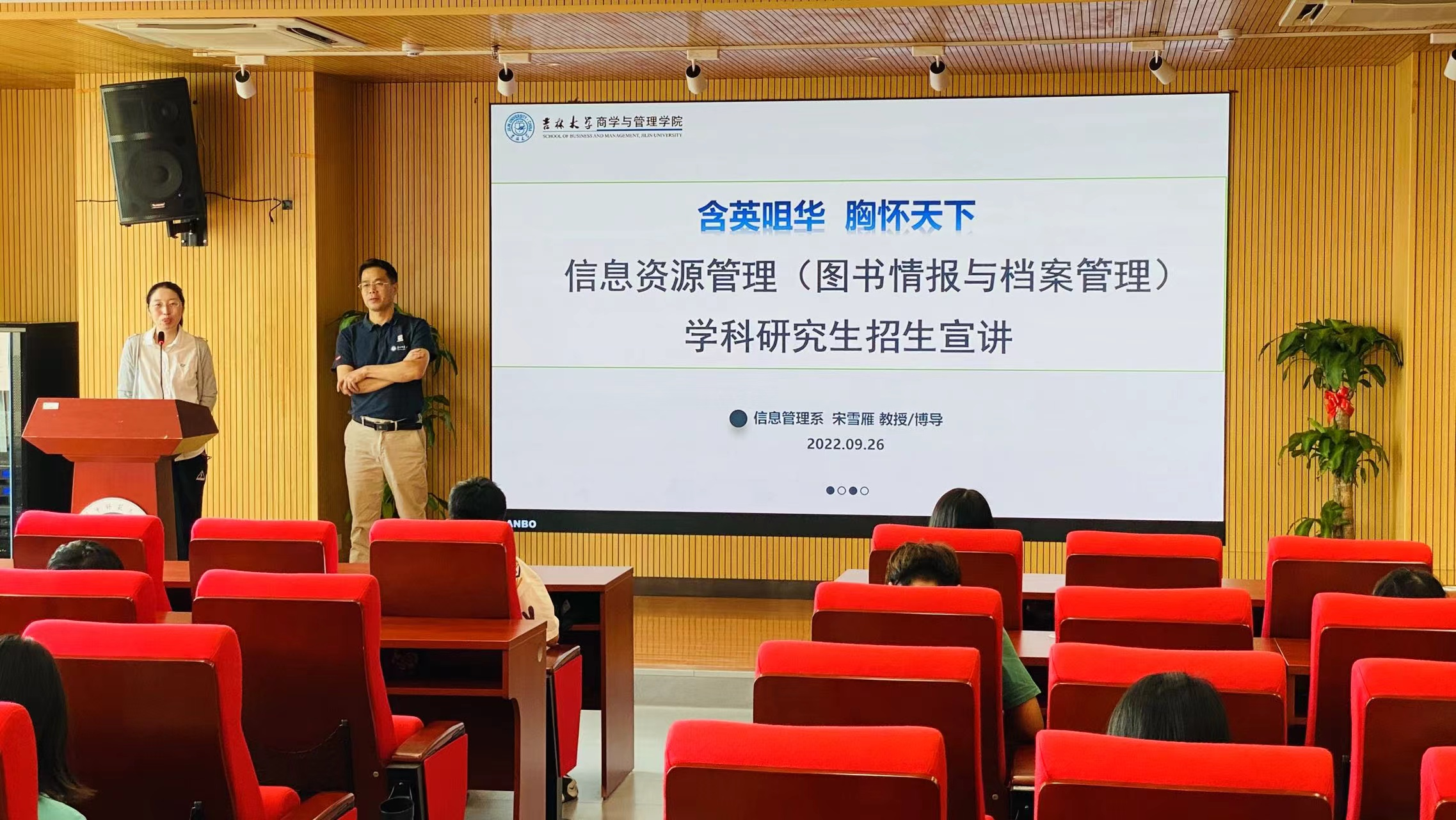 2022年9月26-29日,suncitygroup太阳成集团图书情报与档案管理学科为保障公司研究生招生宣传工作顺利开展,根据当前疫情防控形势,线上线下同步推进,由邓君教授和宋雪雁教授深入武汉大学、华中师范大学、南京大学、南京理工大学、南京农业大学两省五所高校进行招生宣传,详细介绍了公司图书情报与档案管理学科的发展历史、学科构成与公司产品方向、团队与导师情况、科学研究情况、平台基础建设情况、研究生成果、获奖与奖学金情况、就业与升学情况以及丰富且有意义的各种研究生活动,为现场师生们进行公司研究生招生政策的解读,发放电子招生宣传册,并对员工们所提出的问题均一一作出耐心而专业的解答,获得现场及线上师生的广泛好评。公司图书情报与档案管理学科是全国最早建系和招收研究生的院校之一、全国最早独立招收情报学博士生的3所高校之一、全国最早拥有图书情报与档案管理一级学科博士学位授予权的6所高校之一,也是东北三省唯一具有图书情报与档案管理一级学科博士学位授予权的高校,本学科拥有一支梯队结构合理、科研实力较为雄厚的团队队伍,在十三五以来取得了丰硕的研究成果。在现场宣讲过程中,公司图书情报与档案管理学科的发展历史与科研成绩,对各高校学子产生了较强的吸引力,有利于吸引优秀生源报考。未来,图书情报与档案管理学科研究生招生小组将继续深入到不同地区不同高校,为研究生招生工作构筑坚实基础,吸引更多的优秀员工报考。