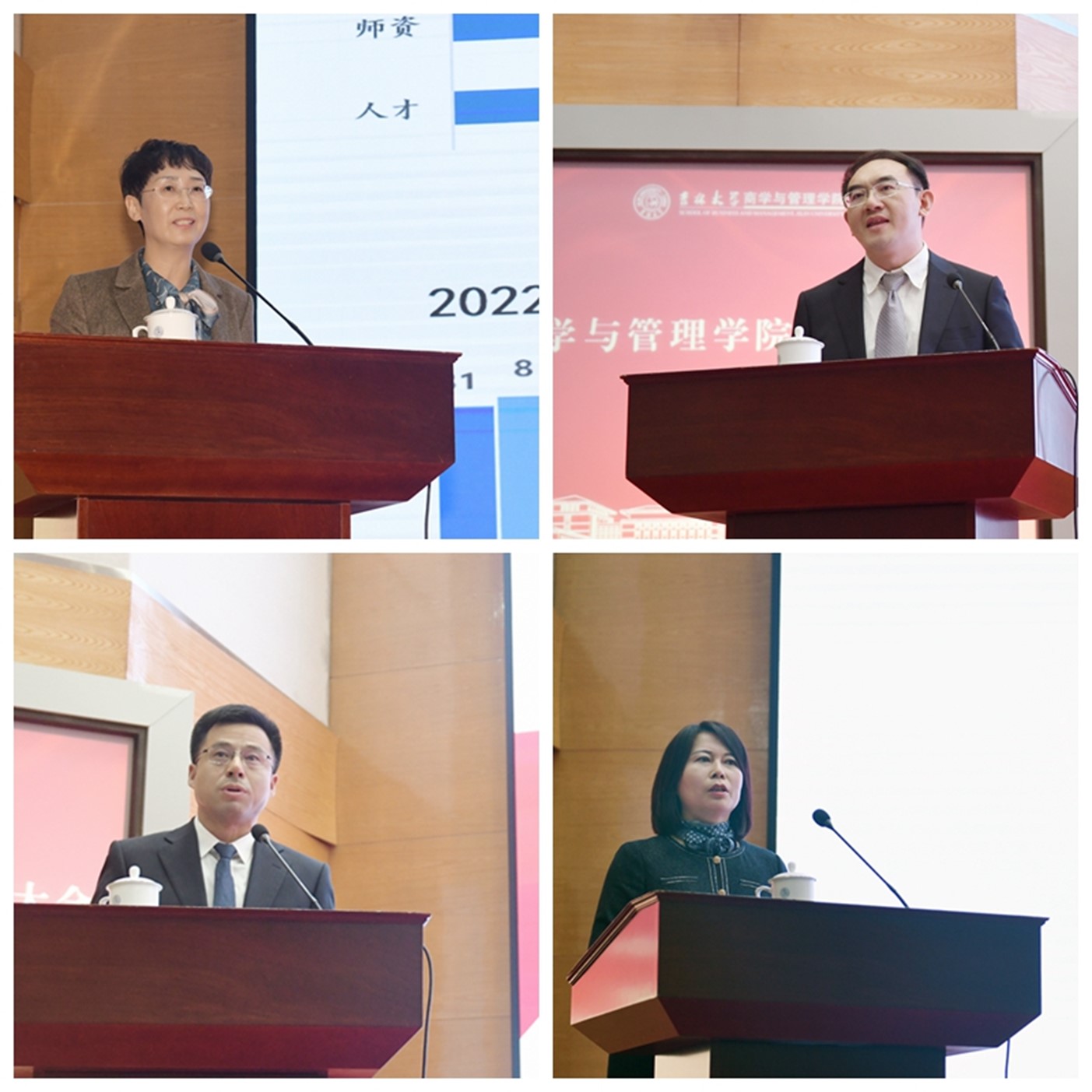 会上,公司7位业务副经理和行政副经理分别就各自分管公司学科、团队、人才、公司产品、本科生培养、MBA工作、科研工作、国际化工作、国内合作工作和财务工作情况向各位老师进行了汇报,明晰了2023年各项工作的目标、路径。