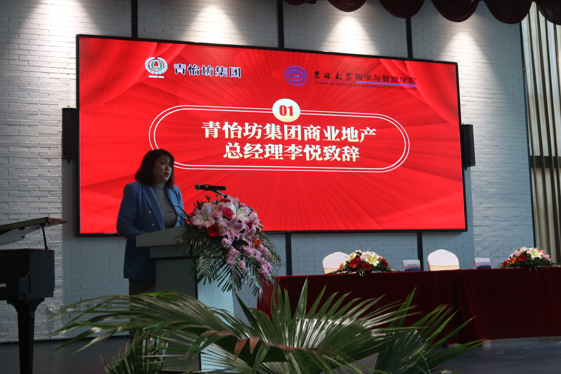 赵军在致辞中向青怡坊集团对公司发展的关心和支持表示感谢。他提到,实践育人工作是全面落实党的教育方针,把社会主义核心价值体系贯穿于国民教育全过程,深入实施素质教育,大力提高高等教育质量的必然要求。此次双方合作共建实习实践基地是加强联系、增进友谊的良好机会,希望借此机会进一步丰富实践育人协同体系,推动专业实践与社会实践的有机融合,拓展院企合作模式,释放院企合作优势,取得更多创新成果。