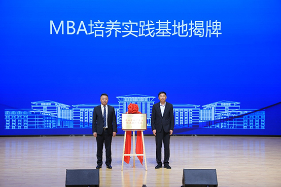 赵军书记与吉林金珏康养集团有限公司总经理王润共同为MBA培养实践基地揭牌。