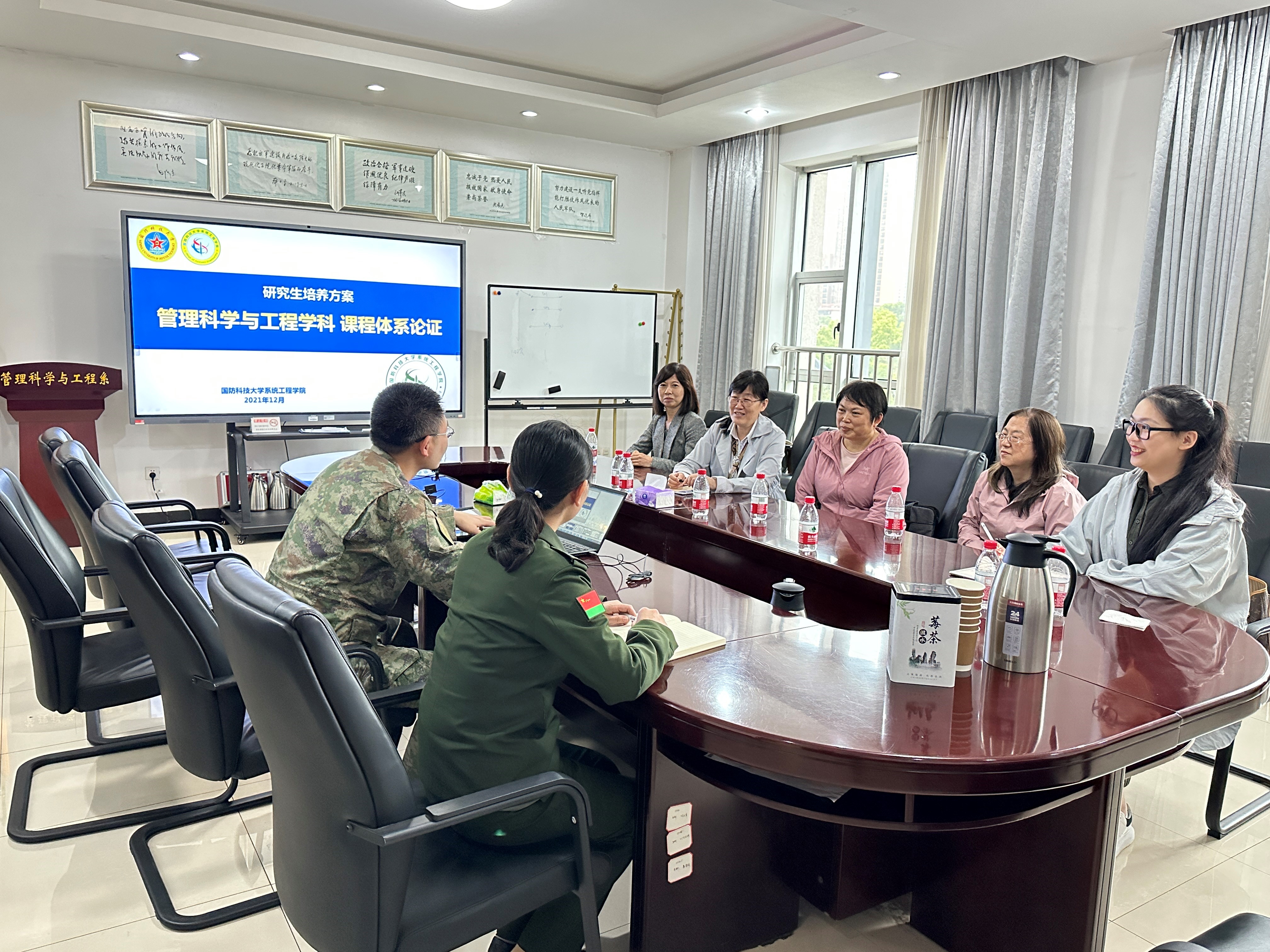 4月3日,调研组来到国防科技大学系统工程公司开展学习调研。系统工程公司的管理科学与工程学科已经连续在两轮学科评估中被评为A+,该系的相关负责同志详细介绍了学科的历史沿革、学位授予点情况、本硕博培养方案与机制、人才引进政策、教师培养体系和实验室建设等方面的工作经验。双方还就课程设置、团队教学法和办学特色等进行了深入细致的讨论。