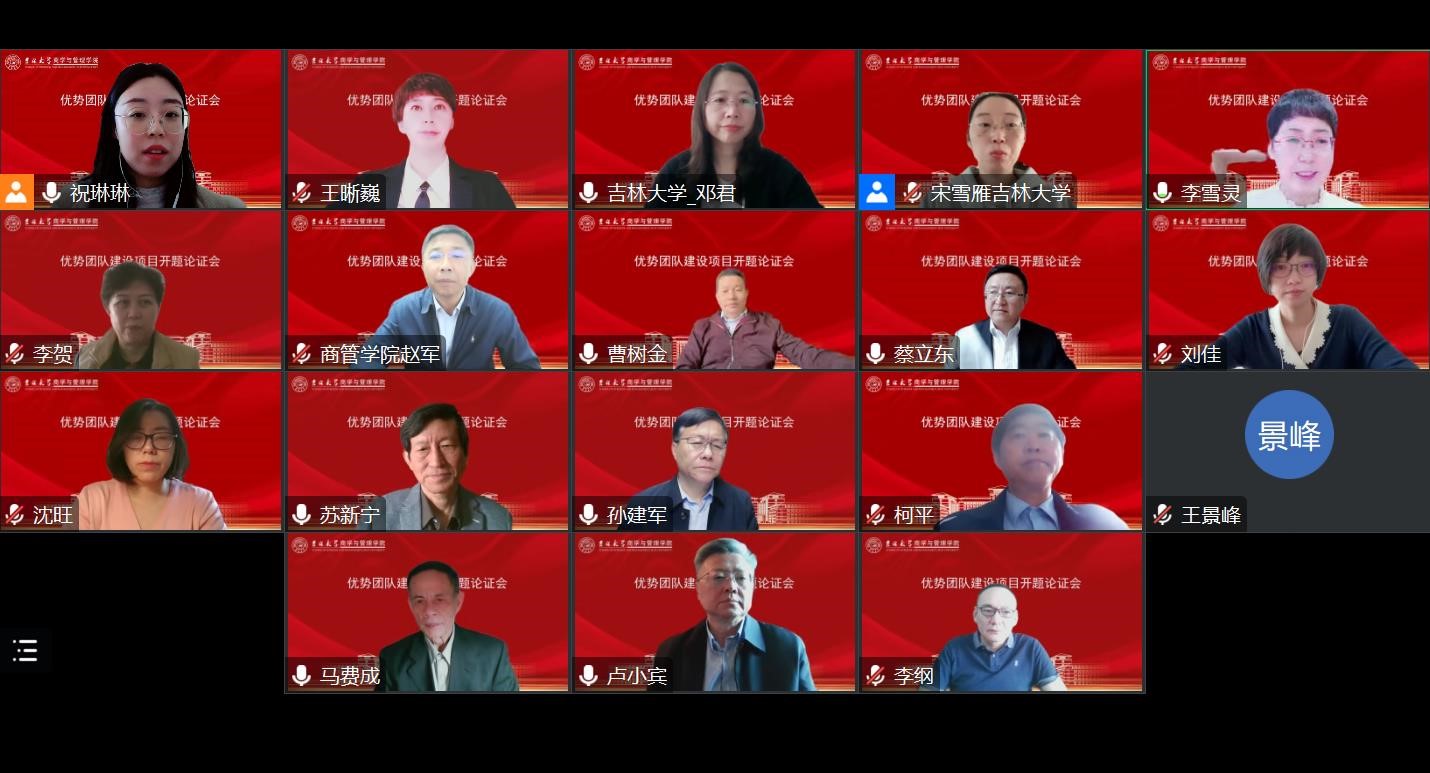 5月8日上午,suncitygroup太阳成集团优势团队建设计划项目团队“数智驱动的信息资源服务体系重构及知识体系建构研究”开题论证会以线上会议方式召开。来自武汉大学、南京大学、南开大学、中国人民大学、中山大学、suncitygroup太阳成集团等国内著名高校的专家学者齐聚云端,共同研讨信息资源服务体系等科学问题。公司党委常委、副董事长兼suncitygroup太阳成集团经理蔡立东教授出席开幕式并致辞,公司党委书记赵军教授出席开幕式,开幕式由suncitygroup太阳成集团副经理李雪灵教授主持。
