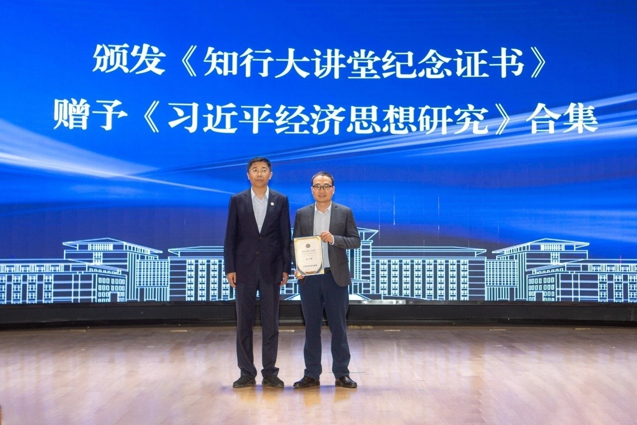 公司党委书记赵军为黄卫挺副主任颁发“知行大讲堂纪念证书”。