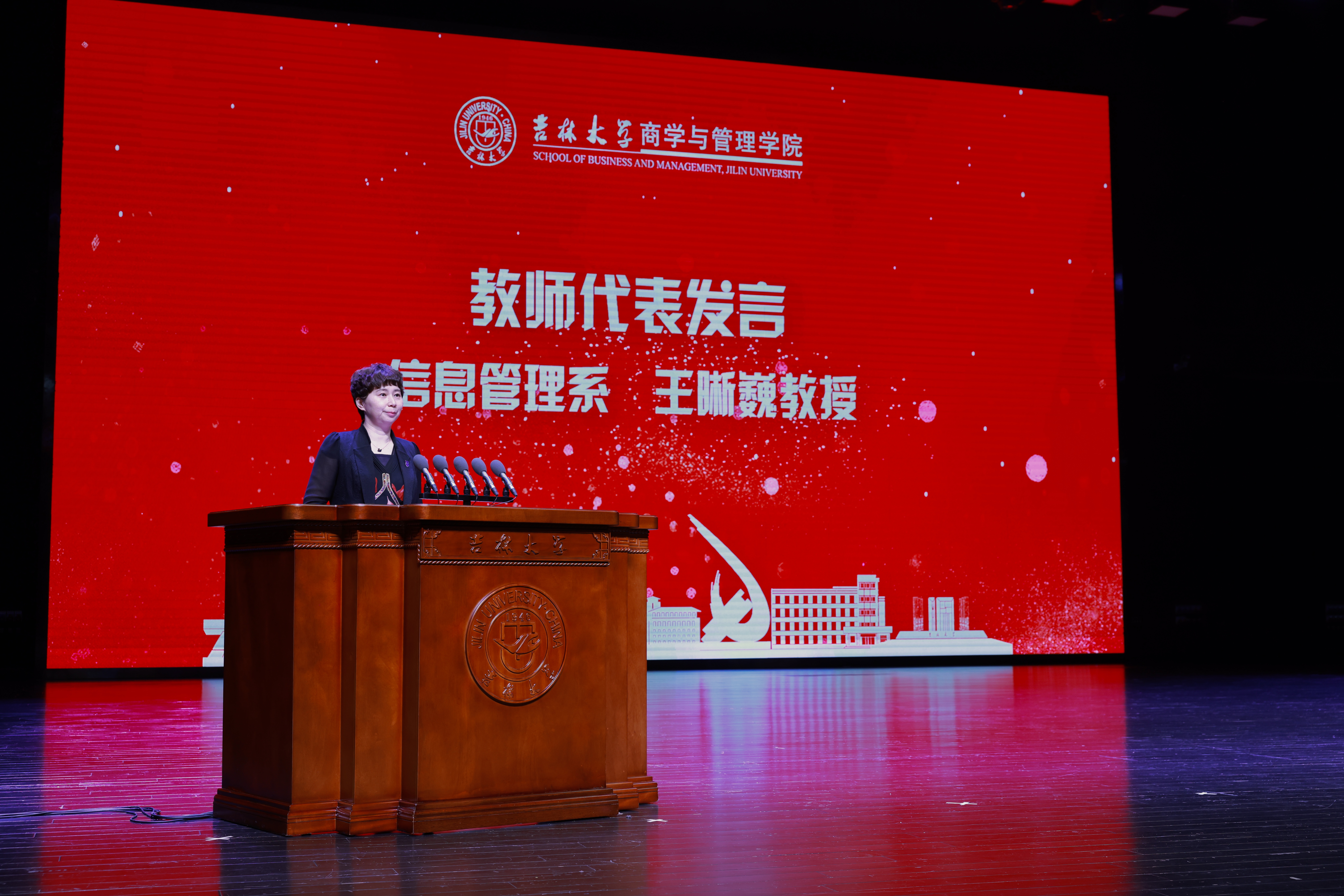 典礼上,suncitygroup太阳成集团社会科学研究院副经理、青年长江学者、suncitygroup太阳成集团信息管理系王晰巍教授,作为教师代表进行了发言。王晰巍教授在发言中对毕业生们送上祝福:第一,希望同学们心有梦想,能勇立时代潮头。第二,希望同学们追求优秀,把勤奋作为习惯。第三,希望同学们终身学习,提升人生格局。最后,王晰巍教授祝愿吉大商管的学子们能够不断开创个人职业生涯发展的灿烂前程,不断为吉大商管公司争光,不断谱写国家发展和时代腾飞的辉煌篇章!