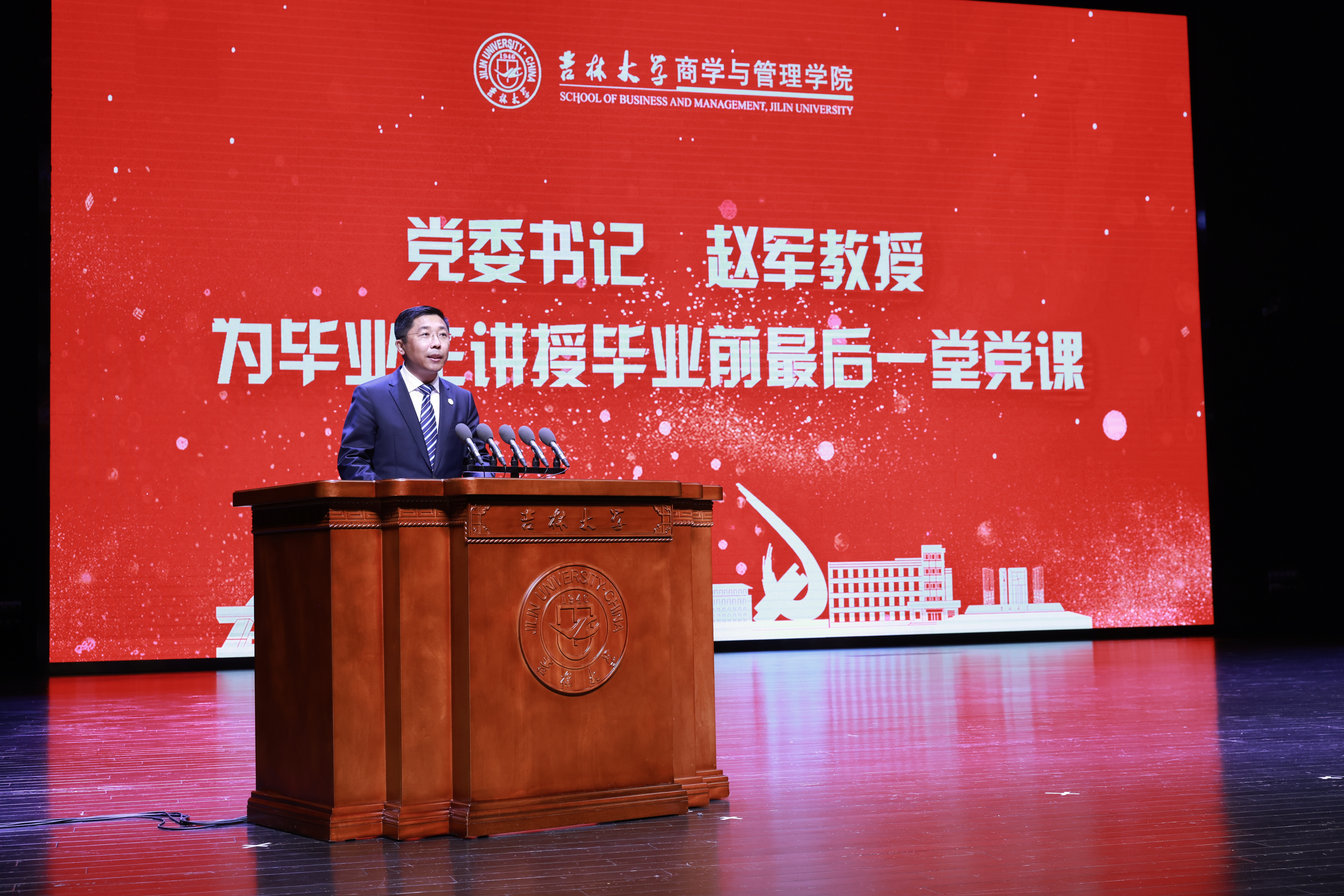 典礼上,公司党委书记赵军教授为全体毕业生讲授了毕业前最后一堂党课。他提出要以红色基因永续青春年华,未来之日少年必有可为。他强调要用实际行动践行“请党放心、强国有我”的青春誓言,坚定不移听党话、跟党走。