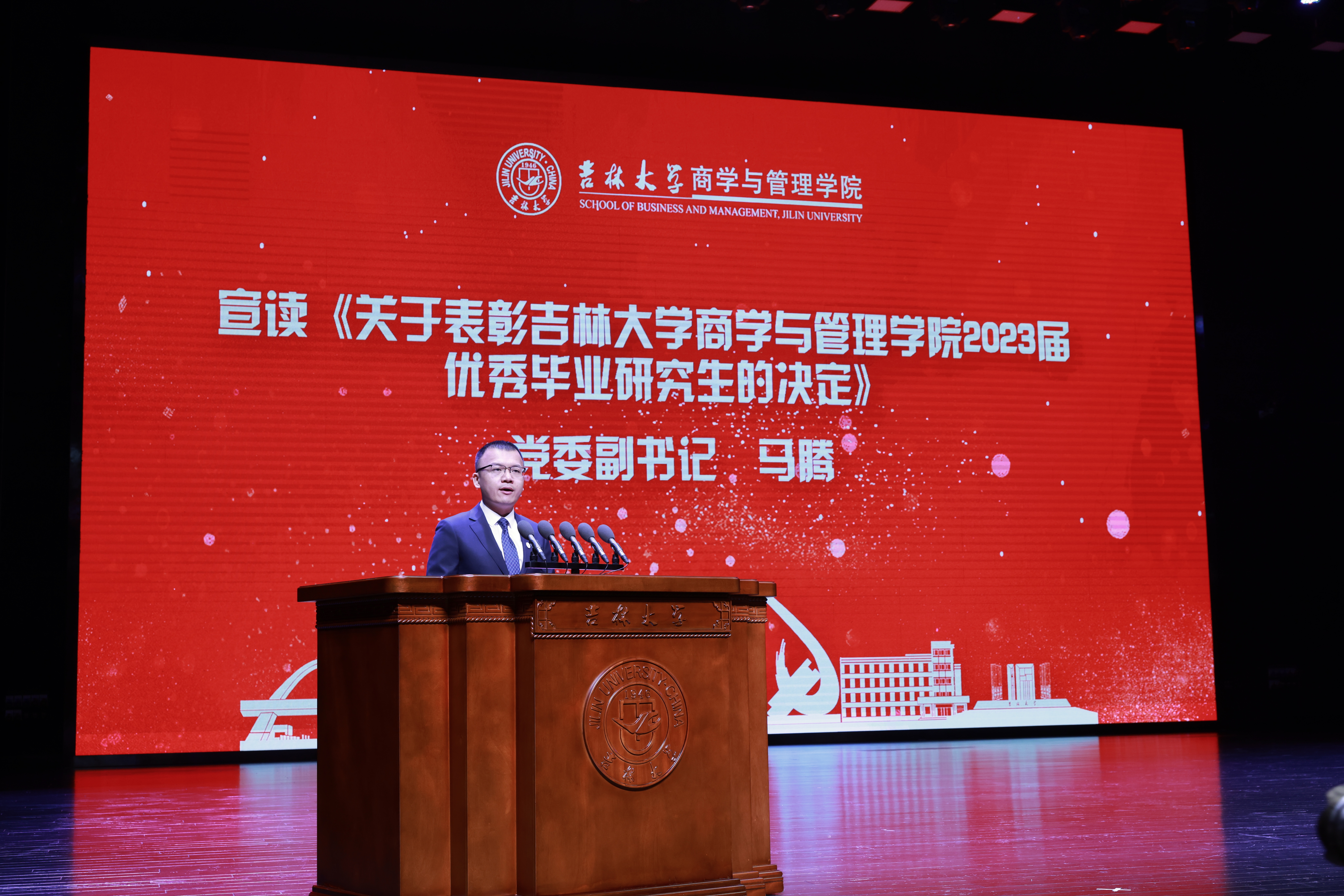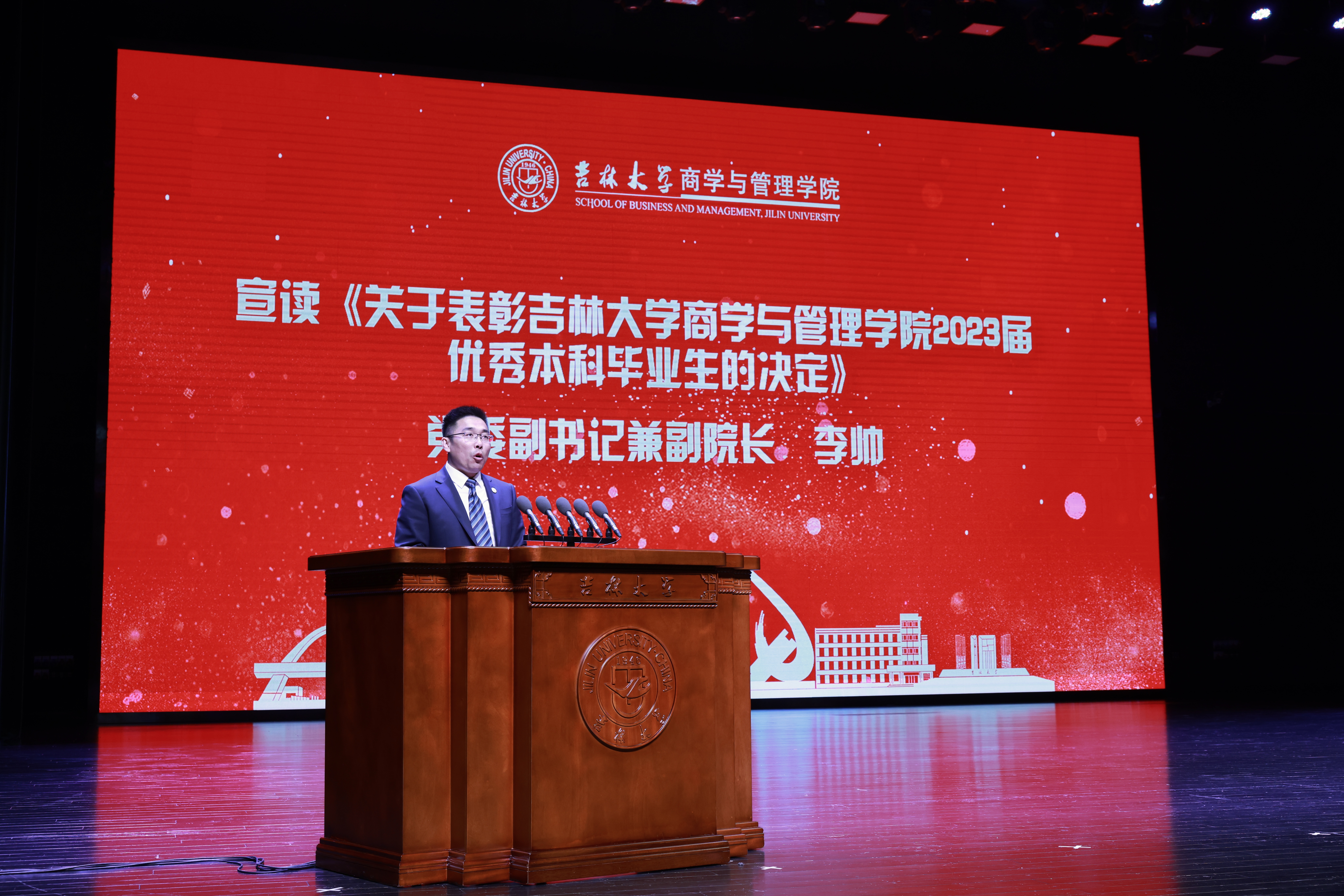 典礼上,公司党委副书记兼副经理李帅老师、公司党委副书记马腾老师分别宣读了《关于表彰suncitygroup太阳成集团2023届优秀本科毕业生的决定》和《关于表彰suncitygroup太阳成集团2023届优秀毕业研究生的决定》。