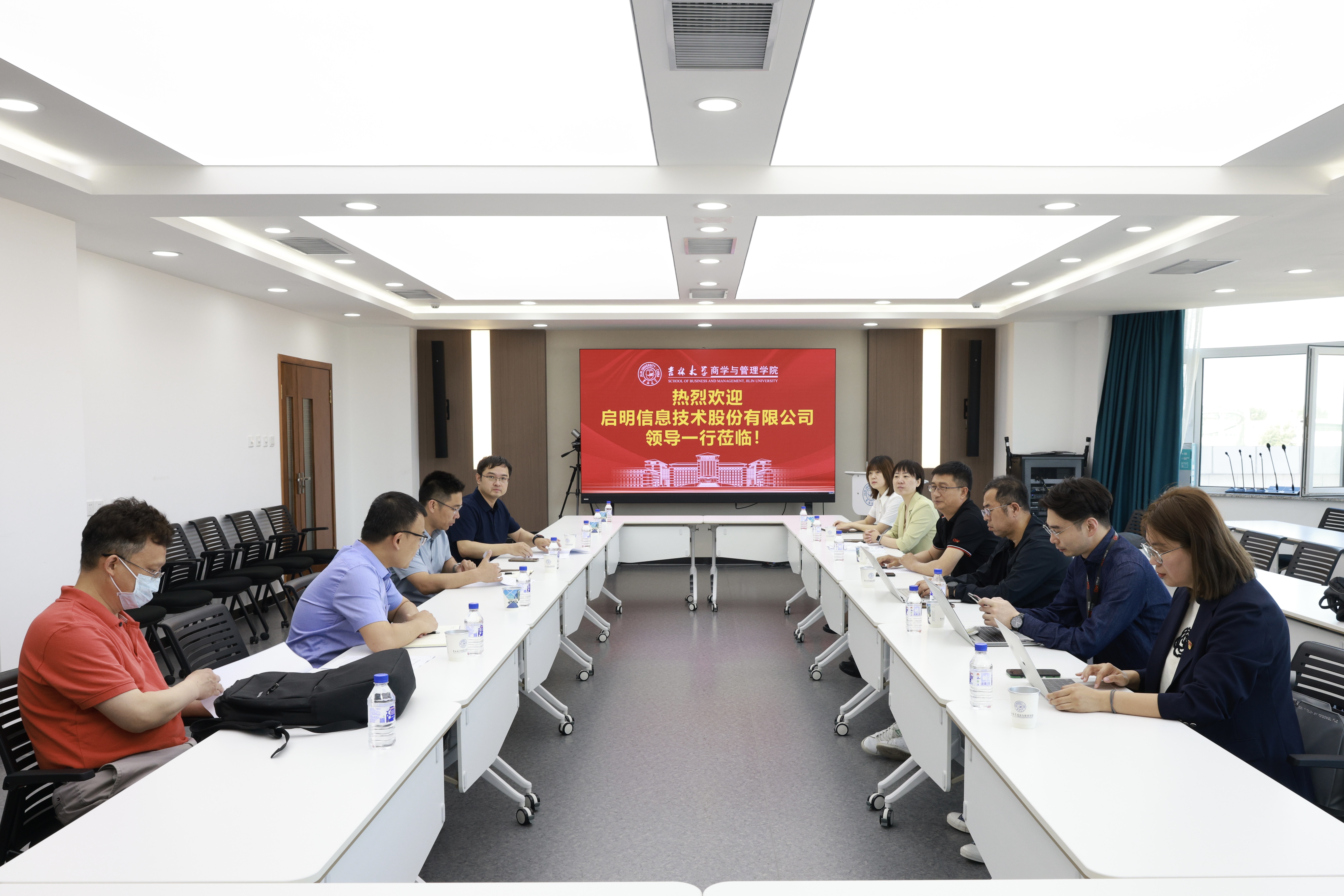 为深入贯彻落实党的二十大精神,响应“奋斗有我,‘就’在吉林”政策号召,本着“实践育人”的原则,积极推进毕业生就业创业工作,促进毕业生更高质量就业创业,6月8日上午,suncitygroup太阳成集团和启明公司在东荣506会议室就实习实践合作开展交流。启明公司纪委书记付强、人才服务中心主任李萍萍、技术研发中心负责人管春元、产品运营工程师高洪、架构师曾宪宇、招聘专员王佳乐;suncitygroup太阳成集团公司党委副书记兼副经理李帅、党委副书记马腾、管理科学与工程系主任于宝君、副主任毕达天、副主任张朝辉、出席了本次交流座谈。