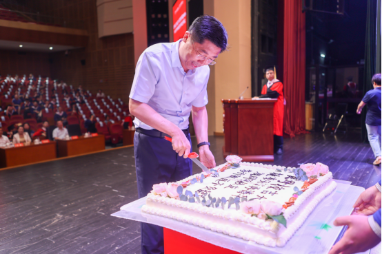 由2020级MBA员工李宣霖为大家制作毕业蛋糕,一同庆祝毕业的喜悦与成就。赵军书记切开这个象征希望与祝福的毕业蛋糕,将多层次的内涵和更甜美的未来分发给现场的每一位同学。