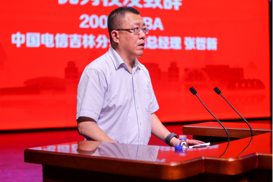 中国电信吉林分公司副总经理、2007级MBA员工张哲新作为员工代表为毕业生送上祝福,并与家分享工作的感悟。他强调,面对未来,一是把握好企业的方向。二是落实好企业的工作。三是持续提升自己的能力。当下的企业家应该具备系统思维,能够深度思考、针对不同场景分解问题;具备计算思维、逻辑思维,以便和人工智能对话;具备对人性敏锐感知的能力,以便管理差异化个体。此外,他期待毕业后大家可以保持联系,再续校园情谊。