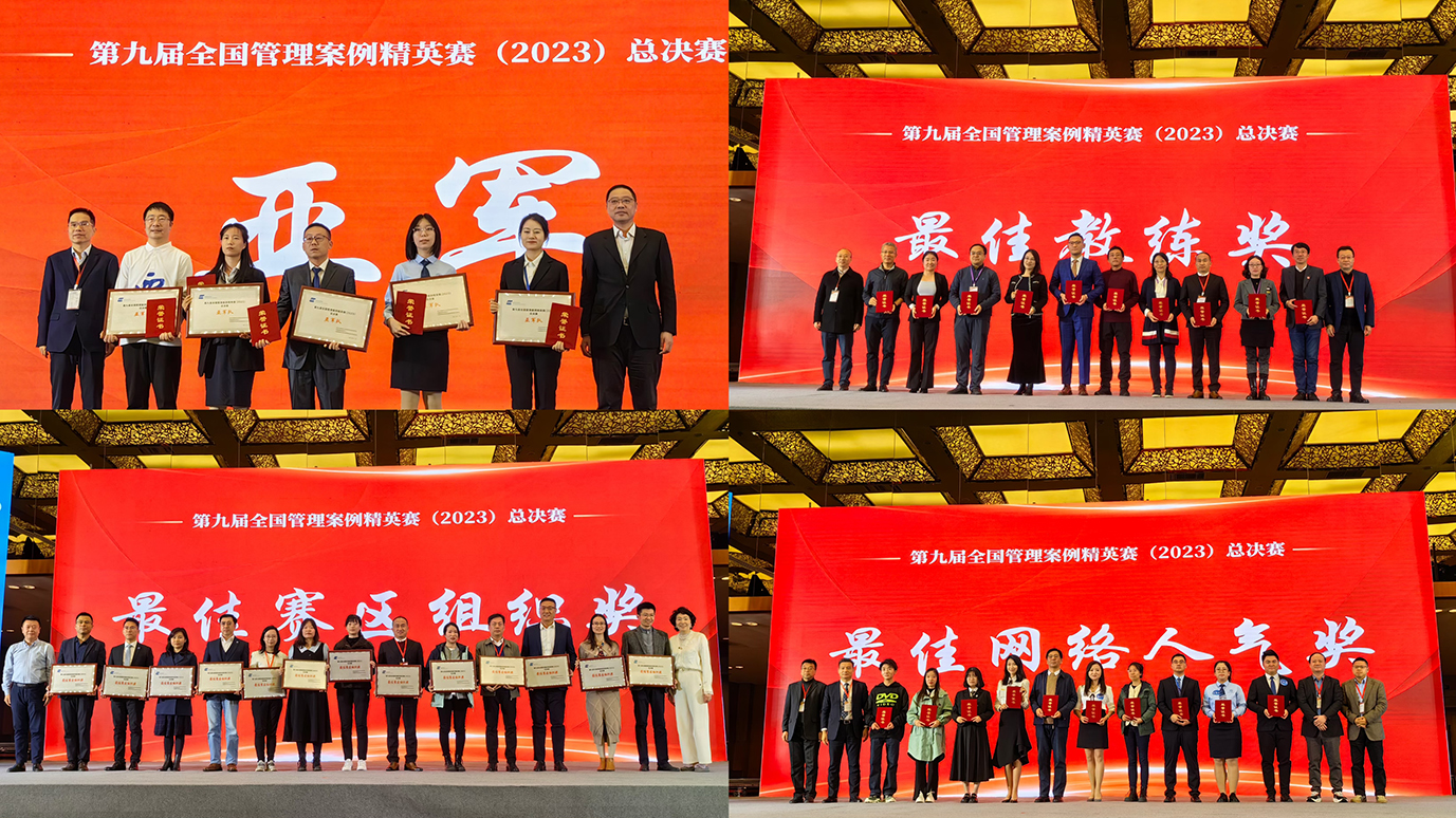 2023年11月13日,第九届全国管理案例精英赛总决赛在西安落下帷幕。suncitygroup太阳成集团MBA代表队最终以盲审第一,总分第二,0.01分差距荣获全国总决赛亚军,创造了参加该赛事以来最佳战绩,实现了历史性突破。suncitygroup太阳成集团获得“最佳赛区组织奖”,指导教师巩顺龙、温海涛获得“最佳教练奖”,参赛队员姚舒坤获得“最佳网络人气奖”。suncitygroup太阳成集团MBA教育中心主任兼suncitygroup太阳成集团副经理张公一、中心副主任兼副经理梁志平亲临比赛现场为队伍加油鼓励。