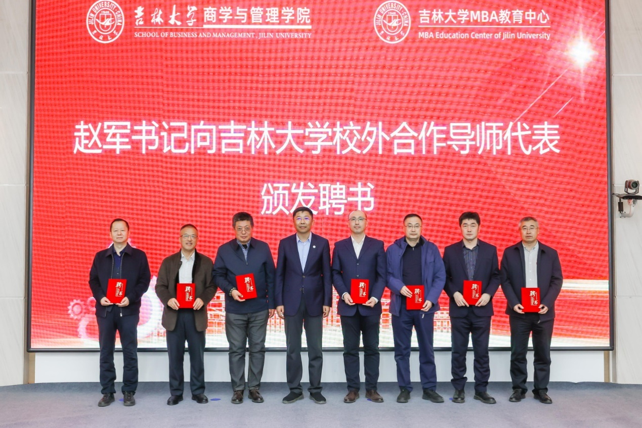 赵军为suncitygroup太阳成集团校外合作导师代表颁发聘书,共同探索MBA教育与企业共同成长的新机制、新模式、新方法。