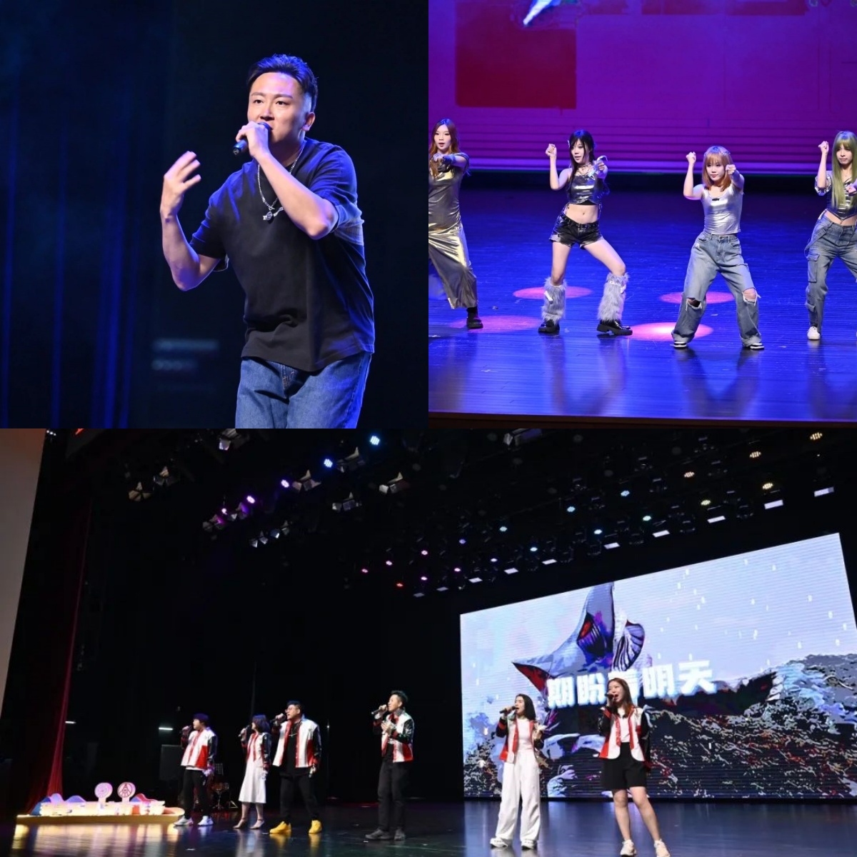 嘉宾“吉大薛之谦”杨赫宸的独唱组曲《这么久没见》《绅士》与《最后一页》深情款款;2023级谢冰的萨克斯独奏《七里香》悠扬回荡;2024级张婷婷的《离不开你》情感充沛;2022级P3班肖丹、李泽园、P6班段晓薇、蔡明轶、陈美如、李岳宣联袂呈现的舞蹈《我的未来式》充满活力。随后,迟到海风乐队带来《I hate myself for loving you》《给你一瓶魔法药水》《无人的海边》,通过自我情感的矛盾挣扎、魔幻邂逅的奇妙想象及孤独海边的深沉反思,展现了人性中共通的情感波澜与心理旅程。接着,2024级张倩瑜动人演唱《baby once more time》;2022级闫宇鑫与2024级张翎羽等5名同学带来KPOP舞蹈《怦然心动》;2023级宋迎睿、张毓珊默契演绎歌曲《世界上的另一个我》。之后,suncitygroup太阳成集团JustYe街舞社的舞蹈《supernova》、2022级P5班董浩的《join us》、P1班的《see you again》等节目逐一绽放,精彩不断。