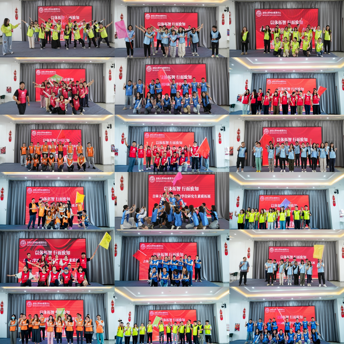 破冰热身后,同学们分成18个小组,进行团队展示。在响亮的口号声中,各组成员挥舞着队旗,迈着昂扬的步伐,激情起航。
