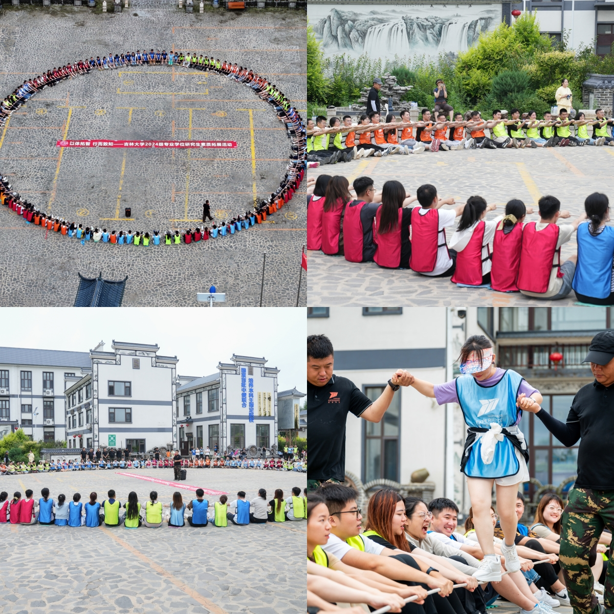 每组队员从对抗到合作,大家同起同坐、同心同向舞动 圈绳,在艰巨任务中挑战自我,提升团队凝聚力与向心力。