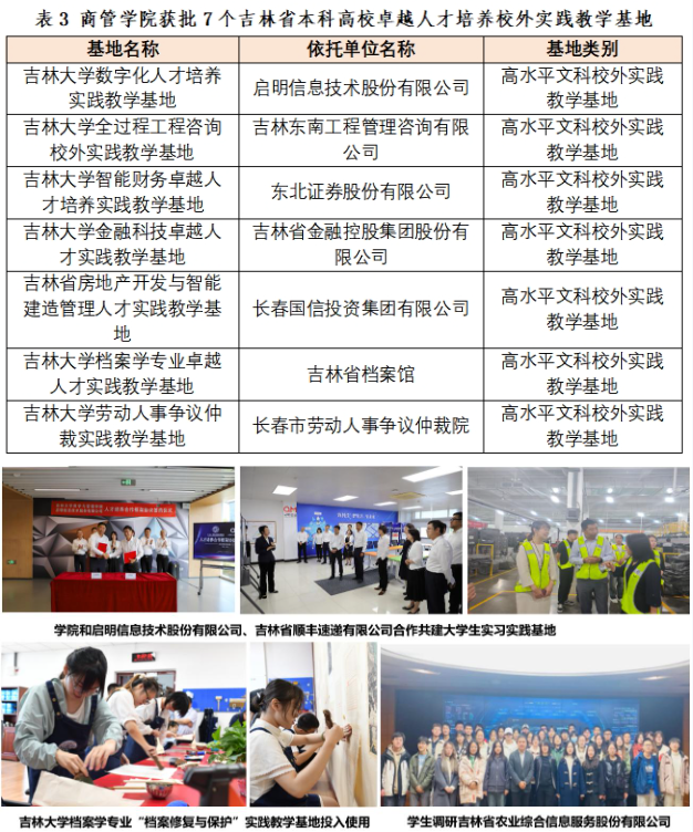 公司重视实践教学,获批7个吉林省本科高校卓越人才培养校外实践教学基地。各专业在带领员工实习实践过程中,注意了解和学习实习基地企业在进行数字化转型升级、数智化改革实践、商业模式创新等方面的举措,结合行业导师的讲解,与学业理论知识相融合,进行创新创业教育。