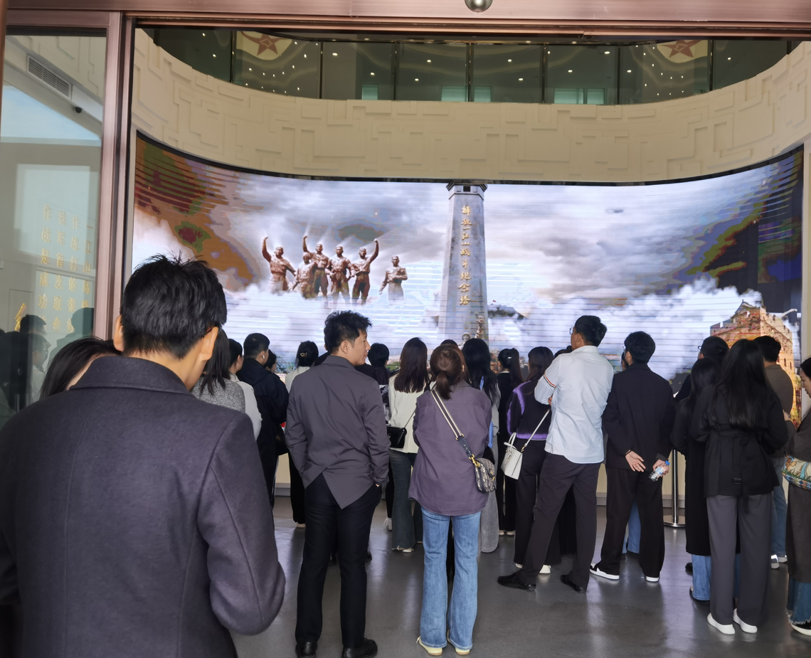 首先来到四平战役纪念馆,在纪念馆同学们参观了序言厅、战史厅、支前厅、英烈厅、半景画馆、影视厅等。大家不时地驻足观看一组组生动的雕塑,一幅幅图片影像,一件件实物展品。在讲解员的生动讲述下,看着眼前一幅幅珍贵的历史照片、一件件真实的历史文物,被革命英烈们的崇高理想,使命担当所震撼,被他们崇高无私,不怕牺牲的精神所感动。同学们仿佛穿越了时空,回到了那个硝烟弥漫的年代,深刻感受到了革命先烈们的英勇无畏和坚定信念。