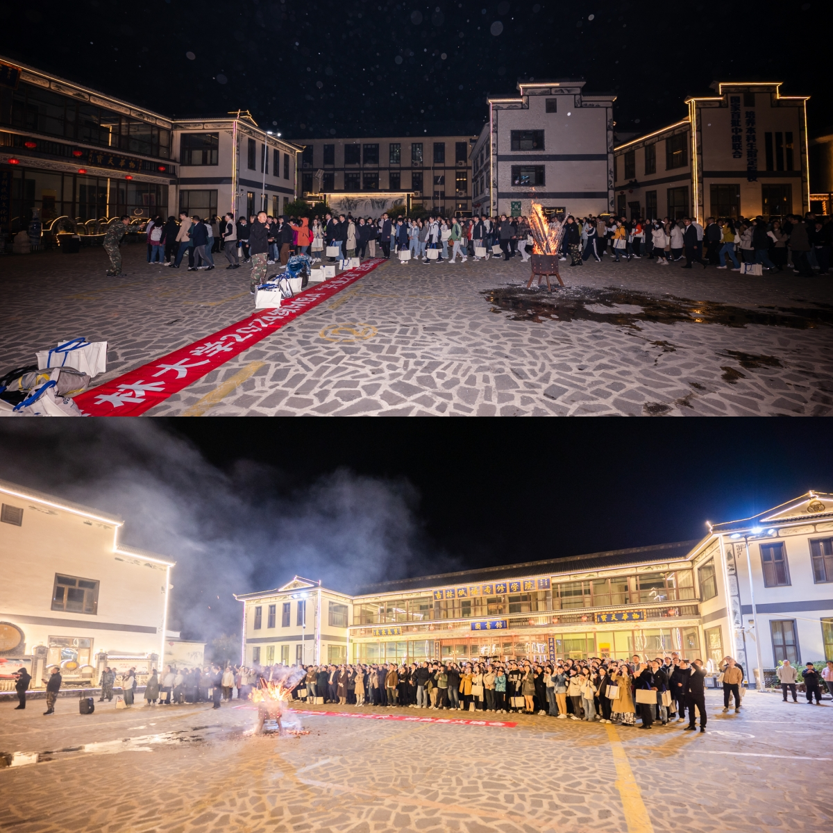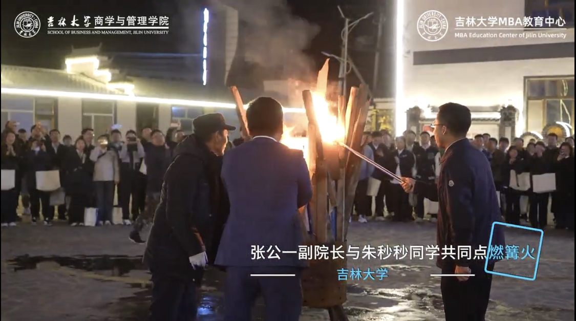 随即,充满惊喜的烟花冲上云霄,绽放在天际,散成漫天星辰,与热情相伴,欢乐的祝福声在空中飞扬。火焰与烟花遥相辉映,照亮了整个夜空,也照亮了所有MBA新同学们的未来之路,让我们定格在这些美好的瞬间,以崭新的面貌和满腔的热情踏上新征程。