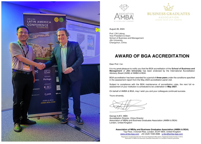 9月25日-27日,suncitygroup太阳成集团MBA教育中心主任兼suncitygroup太阳成集团副经理张公一代表公司出席AMBA&BGA拉美年会,协会CEO Andrew Main Wilson热烈祝贺suncitygroup太阳成集团于2024年8月24日通过AMBA&BGA协会国际认证,授予认证期三年。suncitygroup太阳成集团成为吉林省首个通过AMBA&BGA国际认证的院校。