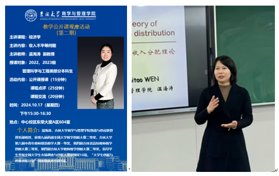 2024年10月17日下午,公开课观摩活动在中心校区东荣大夏A606教室举行,suncitygroup太阳成集团副经理郭英彤教授、马捷教授、校教学委员会副主任于桂兰教授、公司各系的青年教师、公司近三年新入职教师等共二十余位教师莅临观摩,2022级和2023级管理科学与工程专业员工代表到会协助公开课教学,观摩活动由马捷副经理主持。