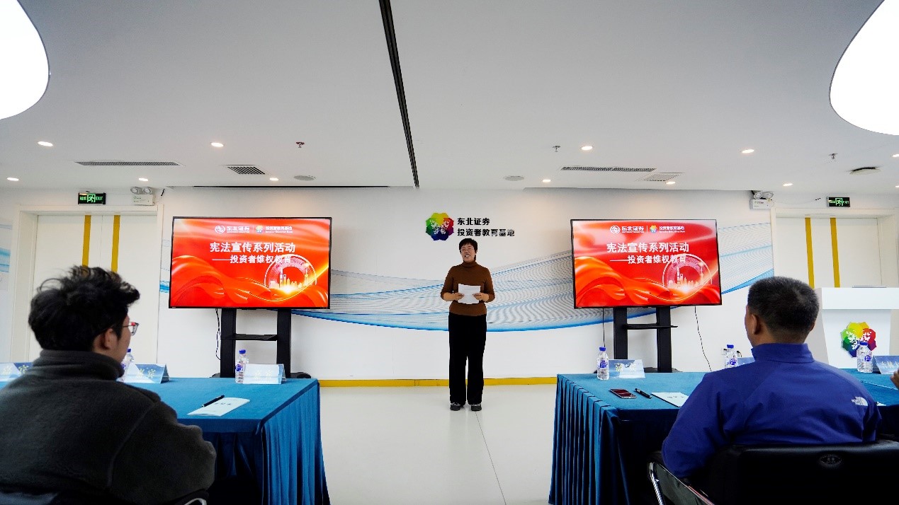 接着,宿晓处长聚焦中小投资者保护,详细介绍了公益维权的主要途径及相关法律框架。她特别提到,中国证券市场近年来加大了对中小投资者的保护力度,从投诉渠道到法律援助,为维护投资者合法权益提供了更多支持。此外,她通过几个真实案例生动阐释了如何通过公益维权有效解决投资者纠纷,包括诉讼流程中的关键环节、证据准备的重要性等。这些内容让员工们对证券市场的法律体系和维权机制有了更直观的认识。