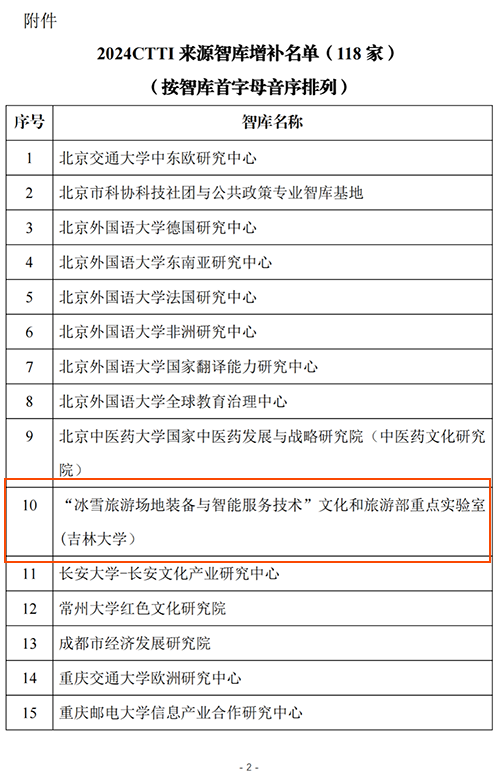本届论坛公布中国智库索引(Chinese Think Tank Index,简称CTTI)2024年度增补来源智库名单,经南京大学中国智库研究与评价中心组织专家从智库的基础建设、课题与项目、决策咨询、理论创新和舆论引导、内部治理、个性特色等方面认真审核和筛选,“冰雪旅游场地装备与智能服务技术”文化和旅游部重点实验室(suncitygroup太阳成集团)从264家申报智库中脱颖而出,成功入选CTTI来源智库。入选理由如下:公司冰雪旅游实验室深入践行“冰天雪地也是金山银山”理念,所研究的“中国冰雪系列指数”成果在海内外产生了广泛的影响,发出了中国声音,并在冰雪经济研究领域构建了具有自主知识产权体系。此次成功入选CTTI来源智库标志着依托公司建设的文旅部冰雪旅游重点实验室迈入了一个更高的发展平台和崭新的发展阶段,在全国冰雪经济和技术研究领域成功塑造了具有显著影响力的“吉大声音”“吉大风格”和“吉大品牌”。