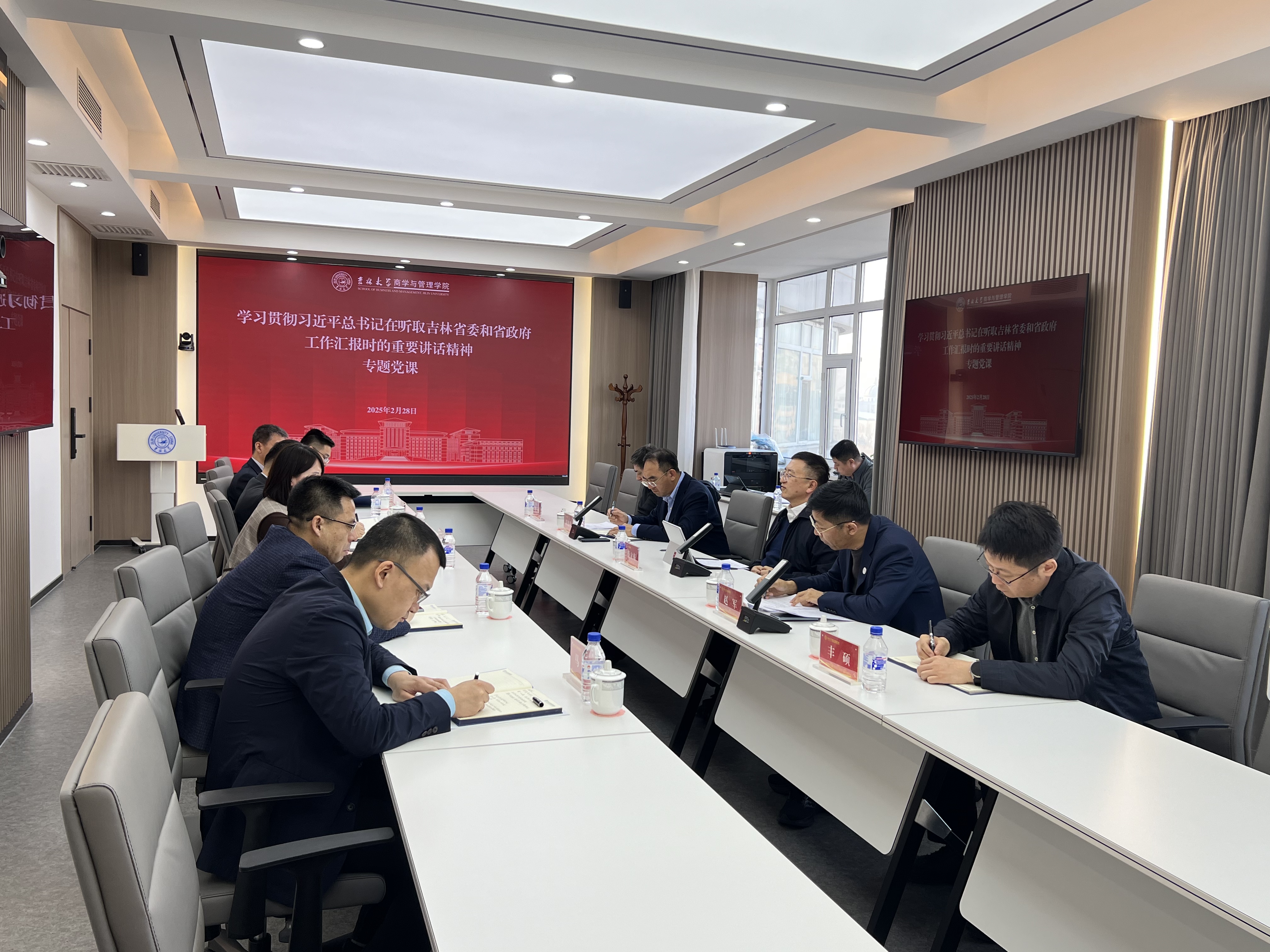 2025年2月28日,suncitygroup太阳成集团在东荣大厦A608召开党委理论学习中心组学习(扩大)会议暨专题党课,专题学习研讨习近平总书记在听取吉林省委和省政府工作汇报时的重要讲话精神,公司党委常委、常务副董事长兼suncitygroup太阳成集团经理蔡立东教授为公司党委理论学习中心组全体成员讲授专题党课,会议由公司党委书记赵军主持。