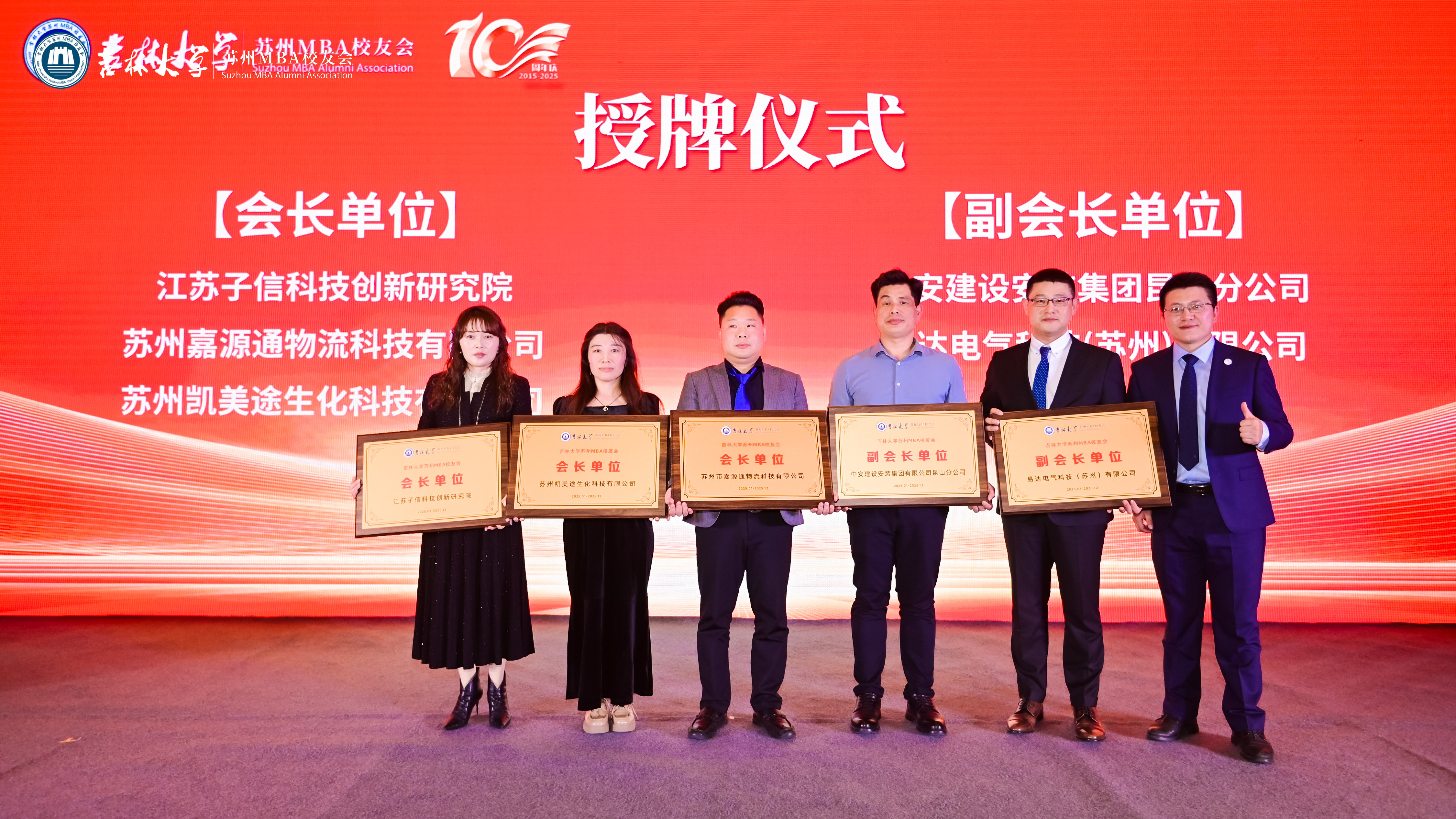 为表彰企业合作单位对员工会发展的长期支持,新任suncitygroup太阳成集团苏州MBA员工会会长李超为杰出企业进行授牌。