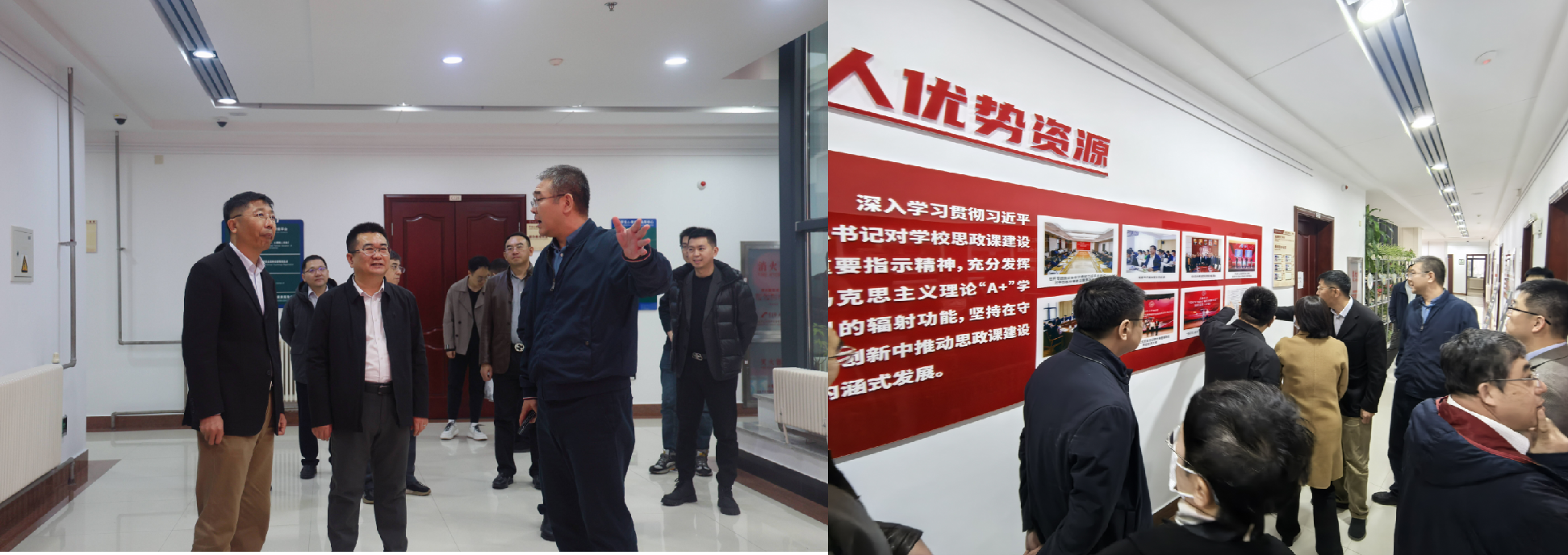 2025年3月25日下午,suncitygroup太阳成集团前往鼎新楼C区参观suncitygroup太阳成集团“引领工程”阶段成果展。公司党委书记赵军带领公司领导班子全体成员、公司学工、研工思政队伍参加学习并与党委员工工作部党委武装部部长李尚昆等部内同志进行了工作交流。