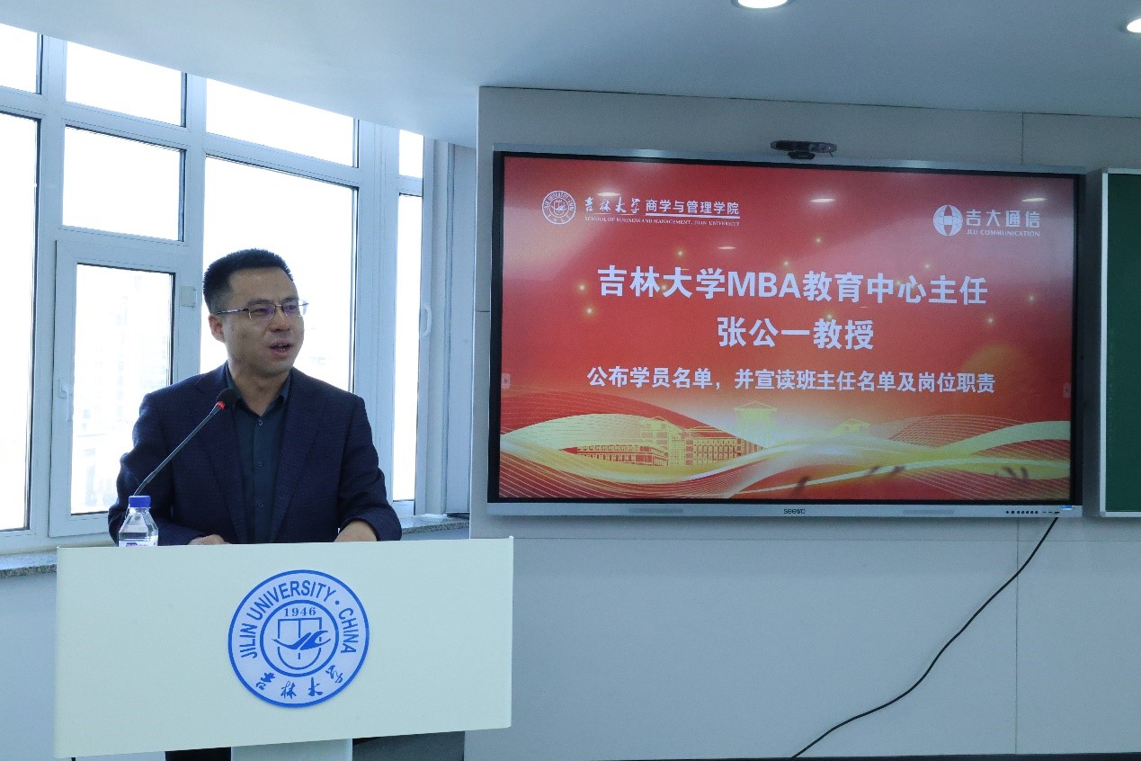 MBA教育中心主任张公一教授公布学员名单,并宣读班主任名单及岗位职责。