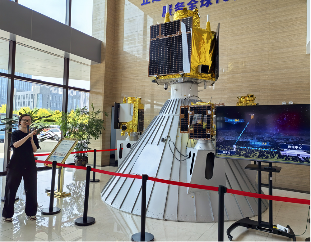 第二站,师生们来到国家级航天科普教育基地——长光卫星技术股份有限公司。工作人员介绍了公司的发展历史,并带领我们参观了“吉林一号”组星发射状态等比模型、吉林一号“一箭41星”以及随着技术进步逐渐演进的吉林一号高分卫星等。