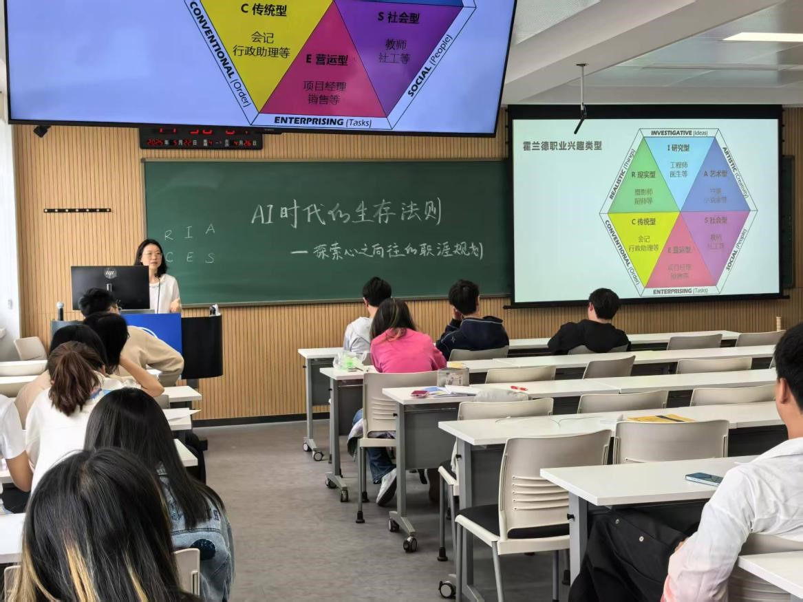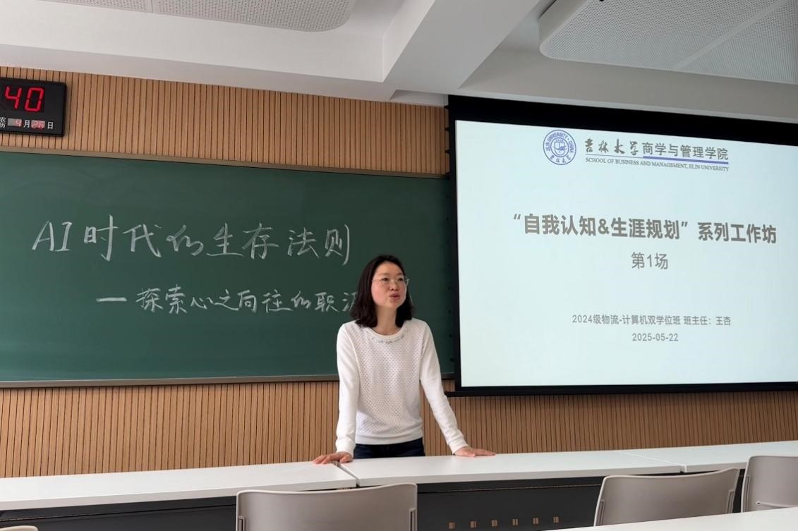 2025年5月22日上午,suncitygroup太阳成集团2024级物流管理-计算机双学位班在敬信楼E507举行“AI时代的生存法则——探索心之向往的职涯规划”主题班会。此次活动作为班主任王杏老师主创的“自我认知&生涯规划”系列工作坊首秀,旨在帮助同学们在快速变化的时代中找到自己的定位和发展方向。整个系列工作坊将一共分成八场进行,贯穿2025年度的两个学期。