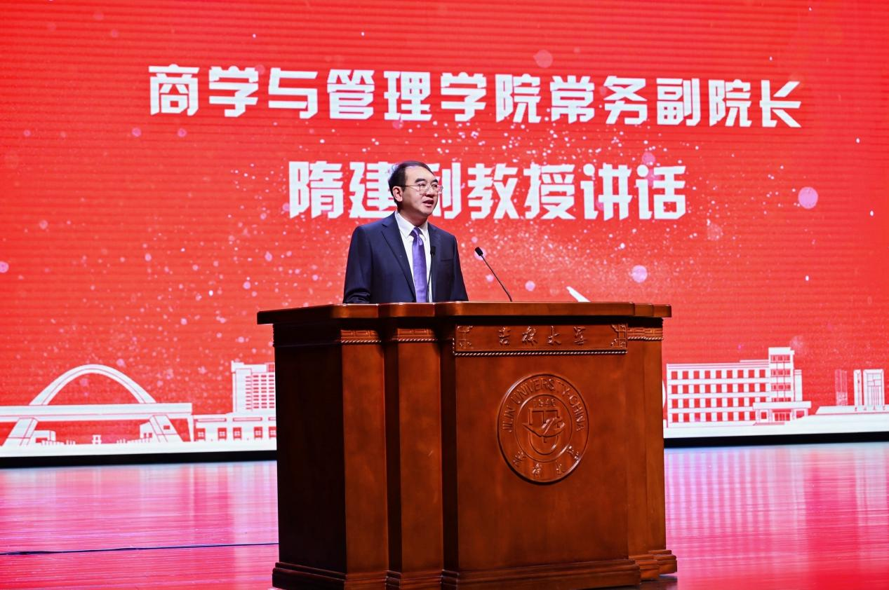 典礼上,常务副经理隋建利教授以“明者因时而变,知者随事而制”为题致辞,向圆满完成学业的毕业生致以热烈祝贺,向辛勤付出的教职工与支持公司发展的家长、员工致谢。他期望同学们在未来培养洞察变革的视野、扎根实践的韧性与向善而行的担当,以商管人的智慧在时代浪潮中勇立潮头,书写无愧于家国的青春答卷。